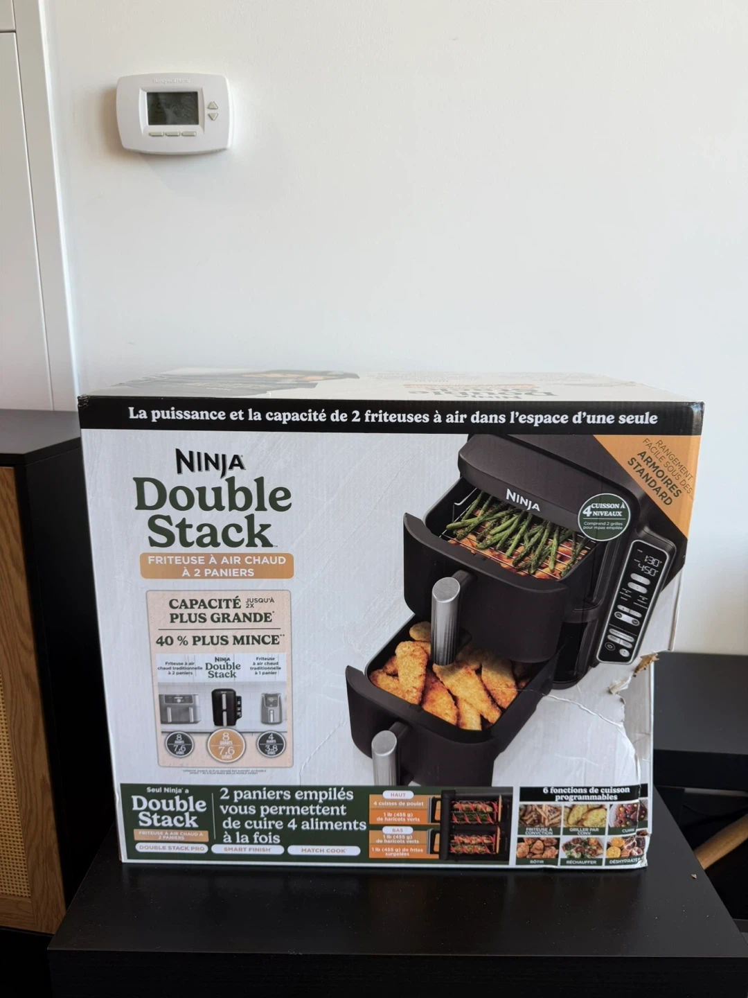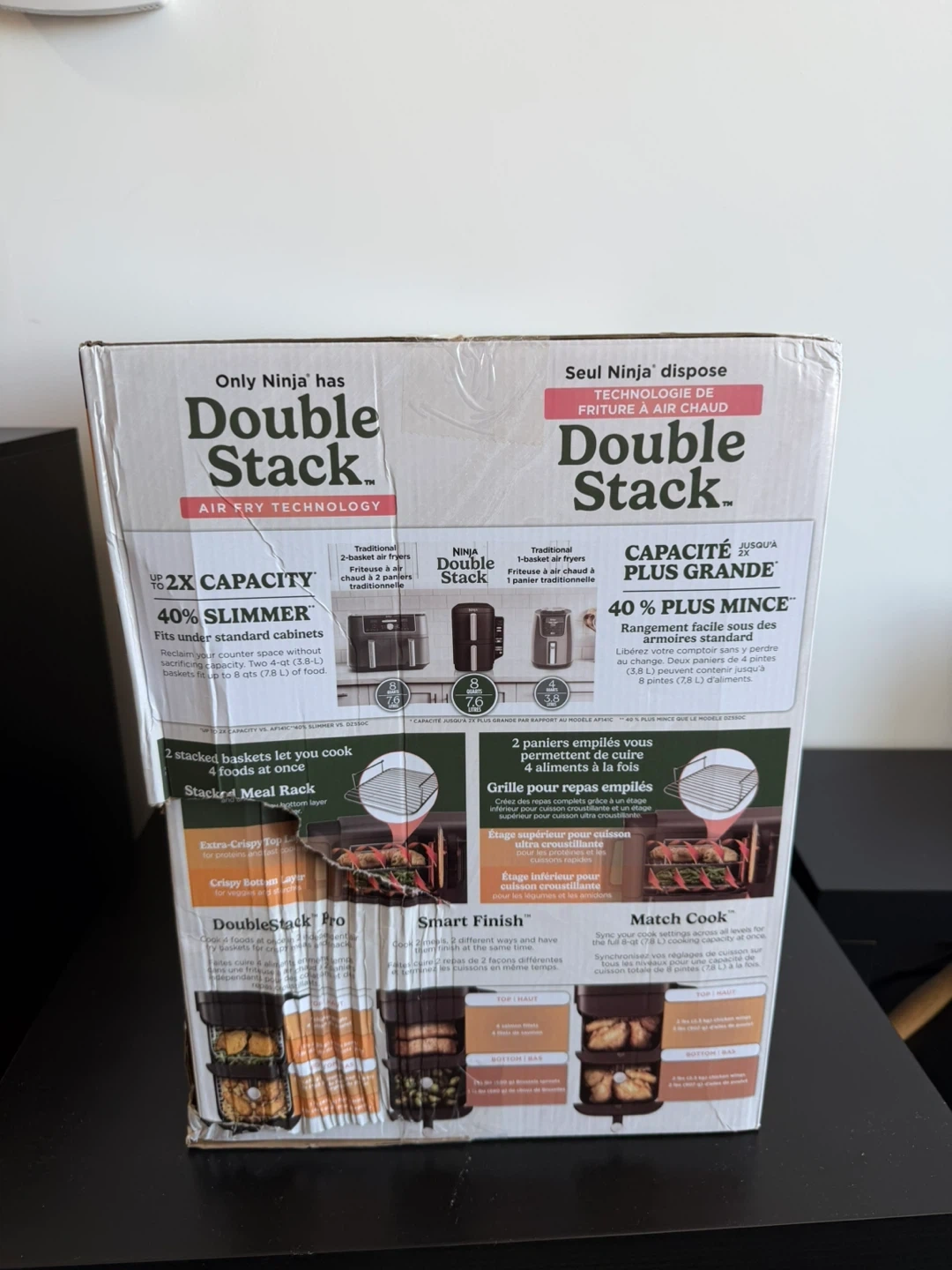 Ninja DoubleStack 2-Basket Air Fryer – XL, 8QT (7.6L), 6-in-1 Functions, New in Box Pickup Location: Downtown Toronto (near Eaton Centre) Product Details: - Model: Ninja Double Stack (SL201C/XL) - 2 stacked baskets—each 4QT, total 8QT (7.6L) - 4-layer cooking using included stacked meal racks - Space-saving design fits under standard cabinets - 6 cooking functions: air fry, air broil, roast, bake, reheat, dehydrate - Independent controls per basket (smart finish & match cook features) - Included crisper plates and stacked racks, easy-to-use control panel - Dishwasher-safe accessories (baskets/plates/racks) - Family-sized capacity: air fry up to 4lbs of wings at once - Original box, styrofoam insert, and manual included Retail price: $249+ taxes.