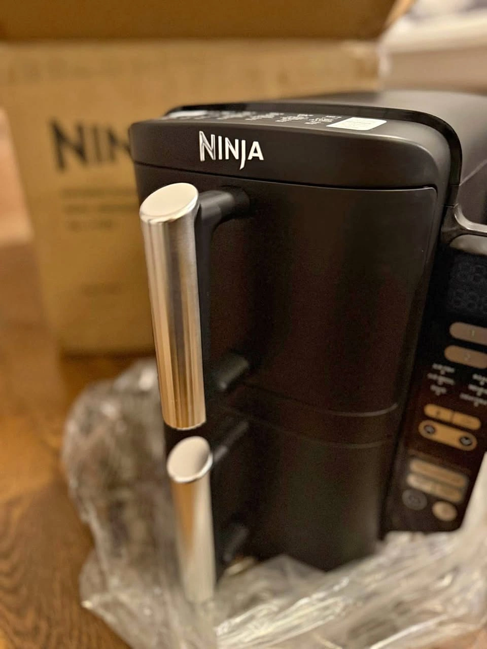 60Brand new in the box. Cosmetic damage - scratch in the drawers (you can see it all in the pictures). Ninja double stack air fryer with 2 x 4 quart baskets, 8 quart capacity. Pick up Woodbridge