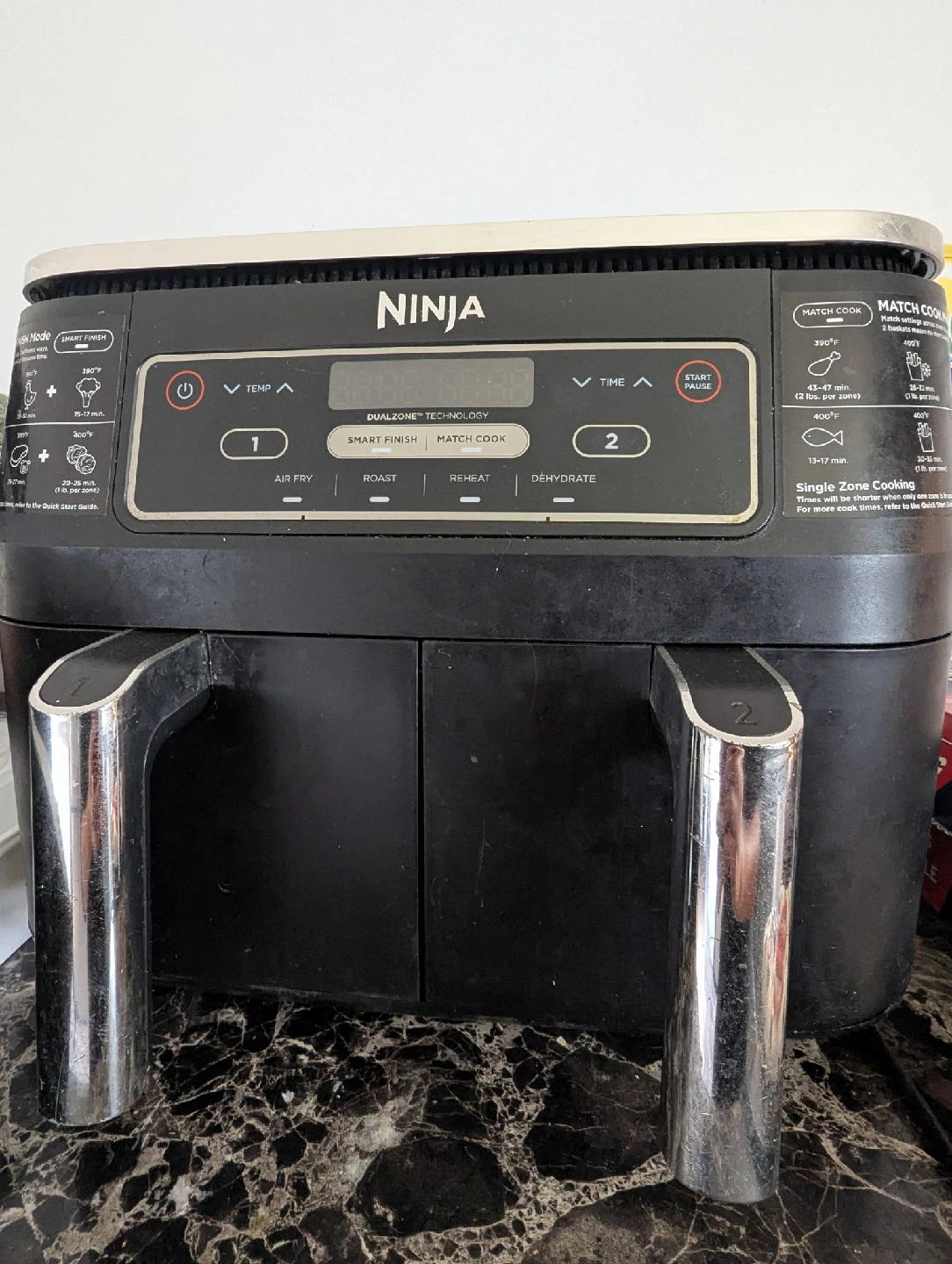4Selling a Ninja Dual Zone Technology air fryer. It has two separate cooking zones, so you can cook two different foods at once! Perfect for quick and easy meals