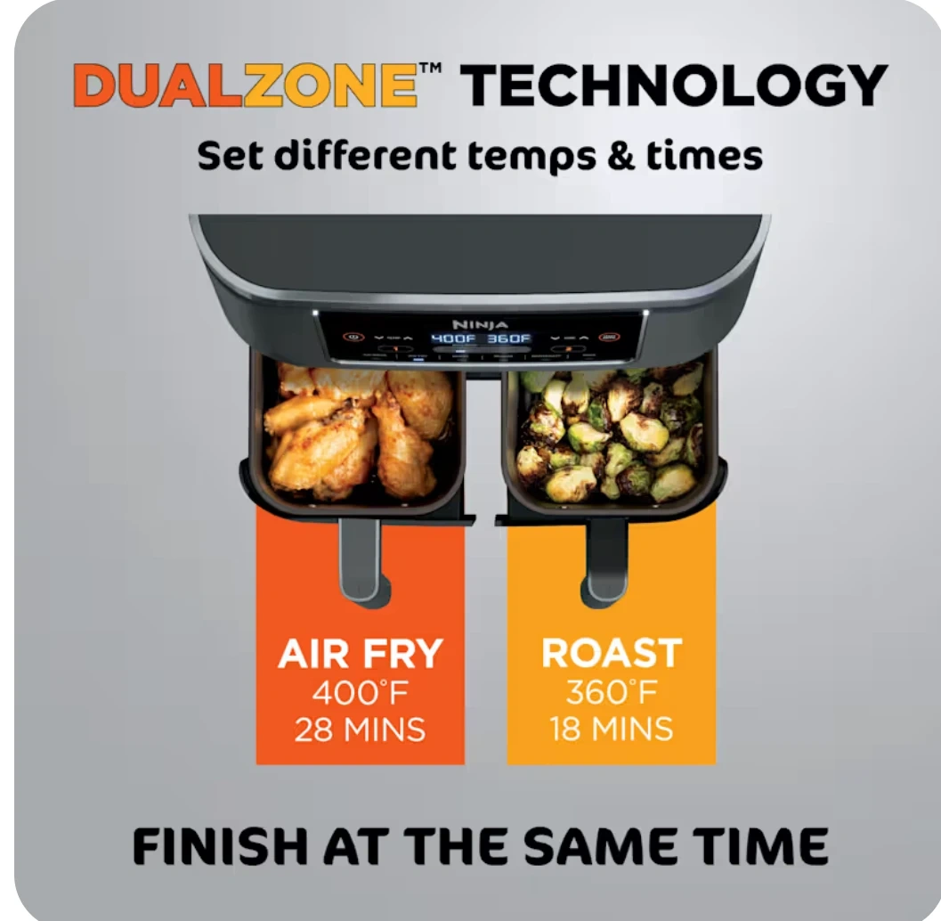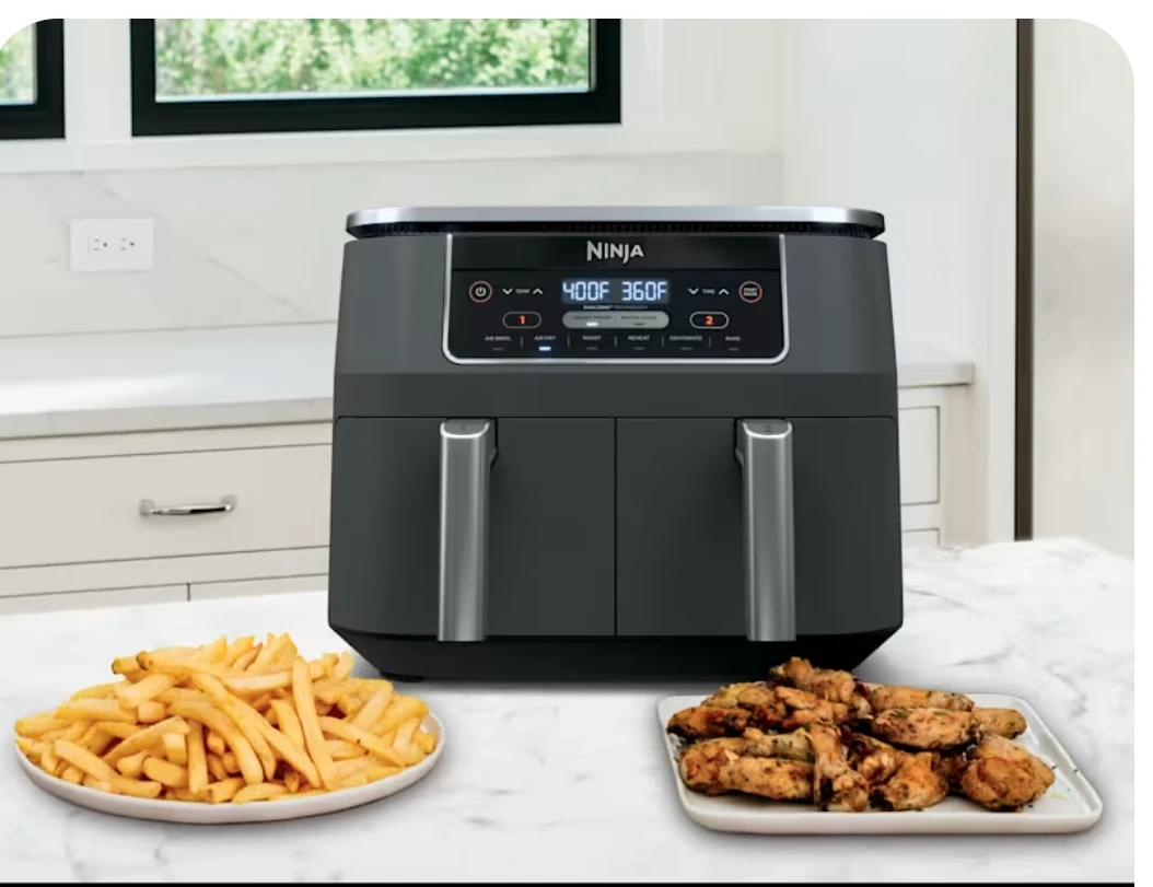 72Fully Sealed & Brand New The Ninja® Foodi® 6-in-1 8-qt. 2-Basket Air Fryer with DualZone™ Technology. The first air fryer with 2 independent baskets that let you cook 2 foods at once, not back-to-back like a traditional single-basket air fryer. Colour :Dark Grey Weight : 10.0 Kg Cash Only Door Pick up. Pick Up Code : 141N