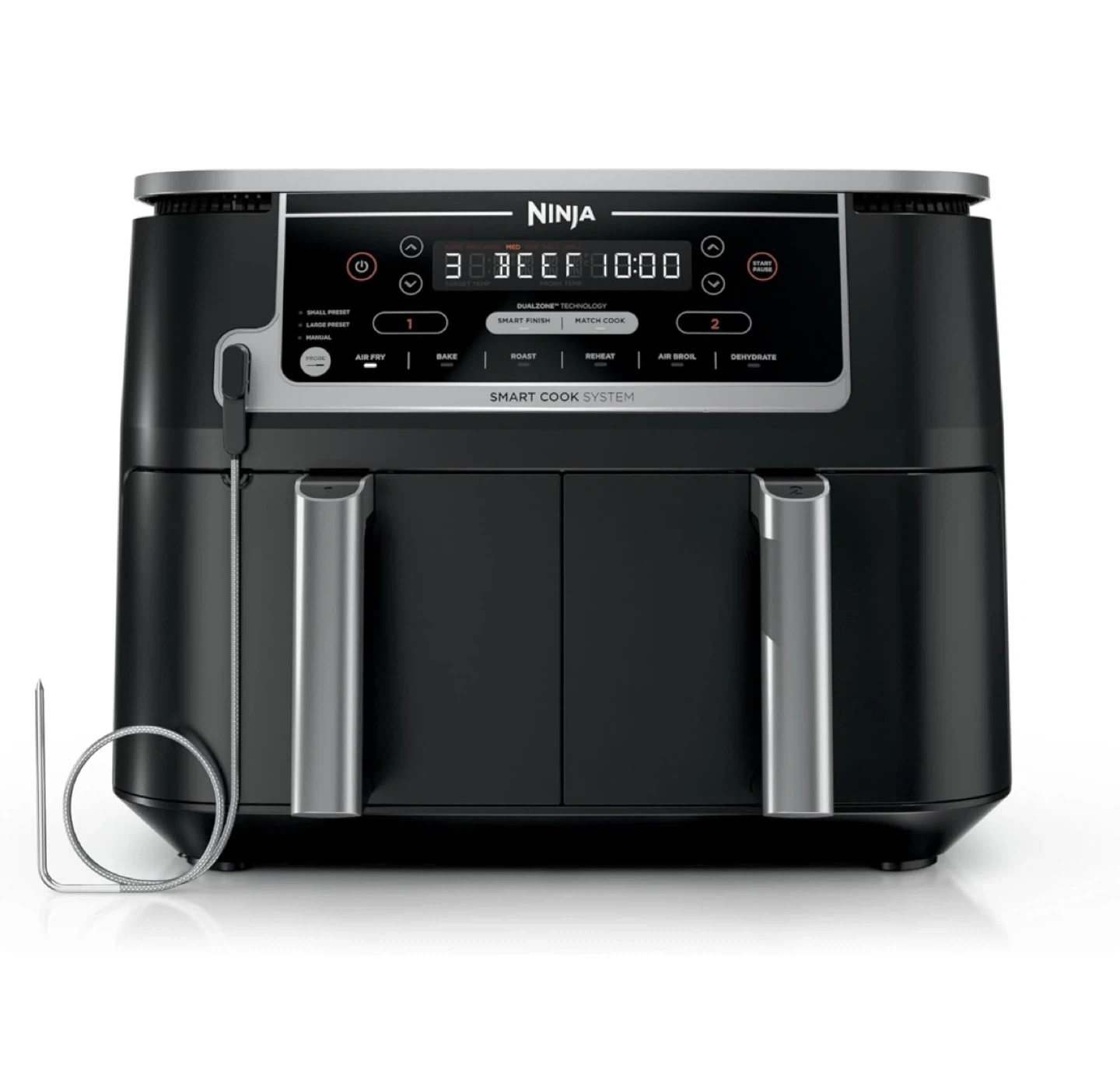 I'm selling a Ninja Foodi Dual Zone Air Fryer! It's perfect for cooking two foods at once, eliminating back-to-back cooking. The two 5-qt cooking baskets are great for large families or entertaining! The Smart Cook System will automatically stop cooking when your food is done