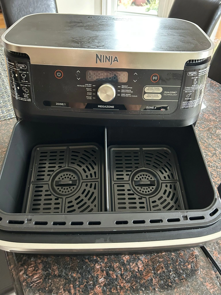 10Selling a Ninja Foodi DualZone Air Fryer in excellent condition! This air fryer is perfect for cooking multiple foods at once with its DualZone Technology. It features a MegaZone for larger meals and offers various cooking functions like air frying, roasting, baking, and dehydrating. Get ready to enjoy delicious and healthy meals with ease