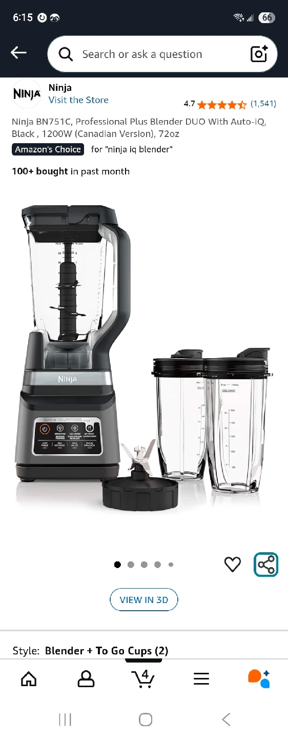 321Selling a Ninja Professional Plus Blender DUO with Auto-iQ, model BN751C. It's the Canadian version, 1200W, and has a 72oz capacity. This blender comes with two to-go cups, making it super convenient for smoothies and drinks on the go! Selling it cause we want to get the one with the food processor attachment. And we don't have space to have 2 appliances 🥹 https://a.co/d/bHfkGt3