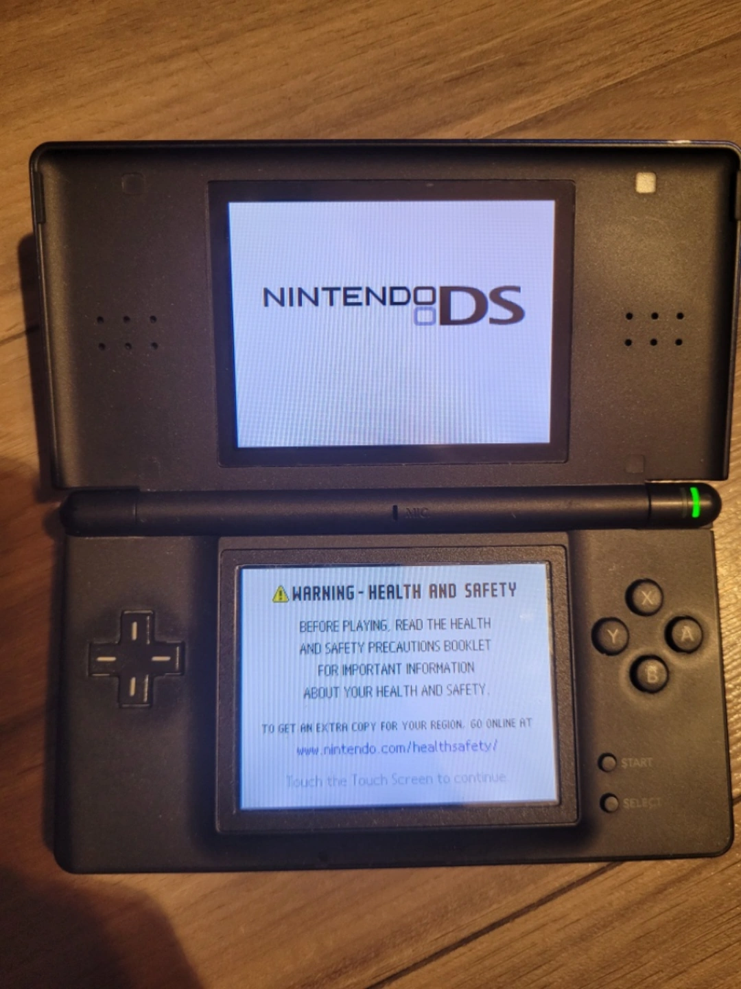 168Nintendo DS Lite. Blue shell. Includes stylus. Plays both DS and GBA games. Minor cosmetic wear.