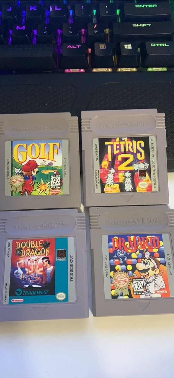 25Selling a collection of classic Nintendo Game Boy games! Includes: - Golf - Tetris 2 - Double Dragon - Dr. Mario All games are in good working condition and ready for some retro gaming fun