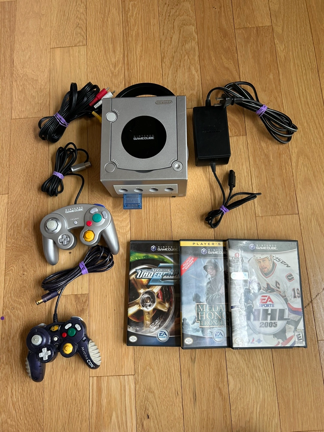 201Excellent condition. Everything tested and working perfectly. Including Console, All Cords & Hookups, Authentic Matching Nintendo GameCube Controller, Mad Catz Controller, Memory Card, Need For Speed Underground 2, Medal Of Honor Frontline & NHL 2005. Selling altogether only. This model also has the Digital AV Output. $140 firm. Pick up in Steinbach or can meet up in Sage Creek or Deacons Corner