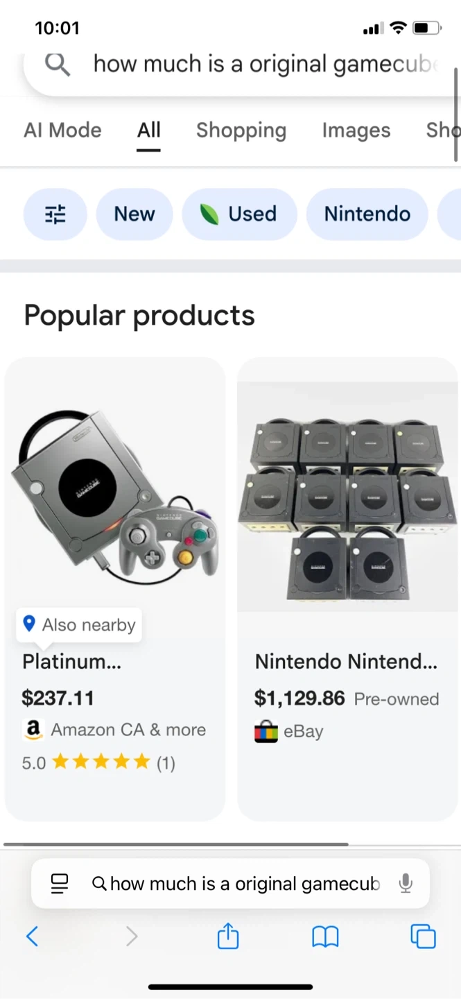 10Selling a Nintendo GameCube console. It comes with controllers and cables as pictured! Great for retro gaming or collectors worth over $600 original system and collectors item asking $90 or best offer. Comes with one game and 2 controllers and the coords and works great.
