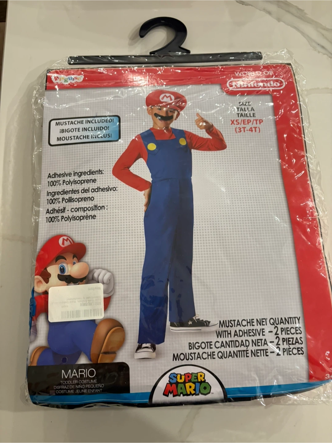 10Get your little one ready for some Super Mario adventures with this adorable toddler costume! It's a (3T-4T). Perfect for dress-up or Halloween!