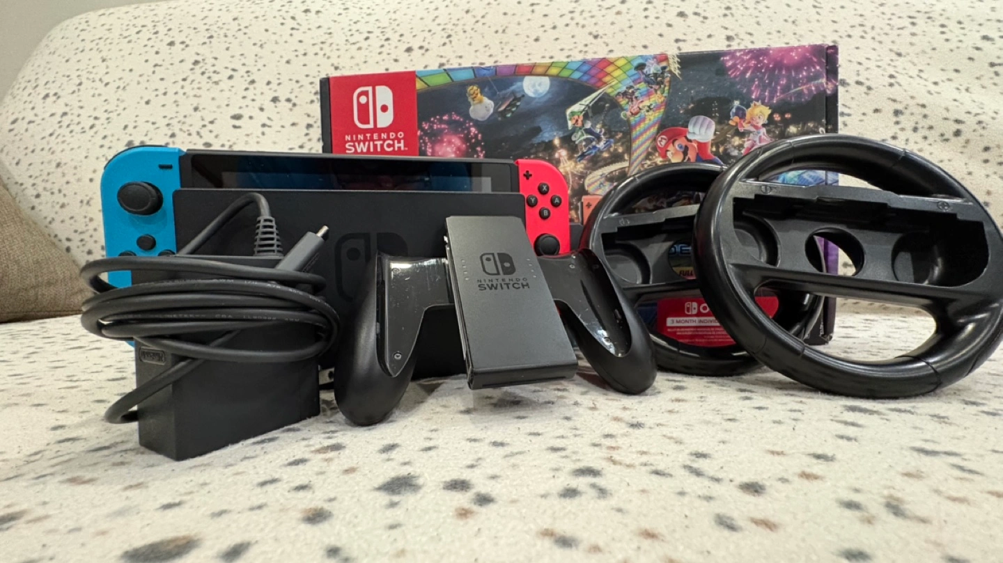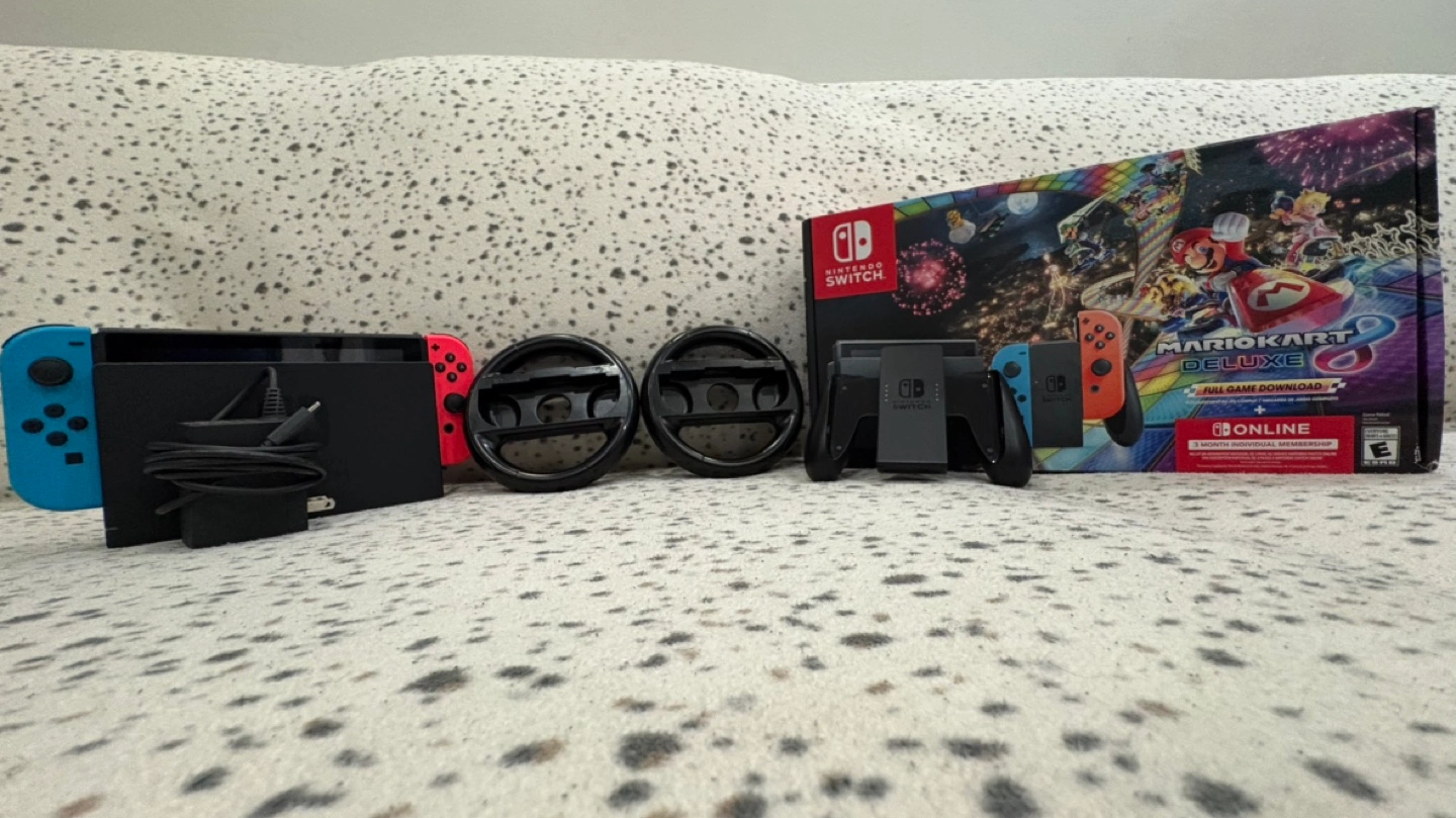 17Comes with Mario Kart 8 box but GAME IS NOT INCLUDED SORRY!!! selling cuz I dont need it negotiable price grip, joycons, wheel included comes with 64GB sd card