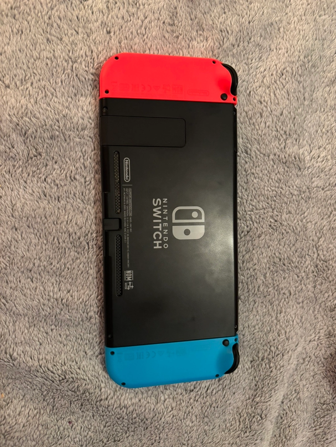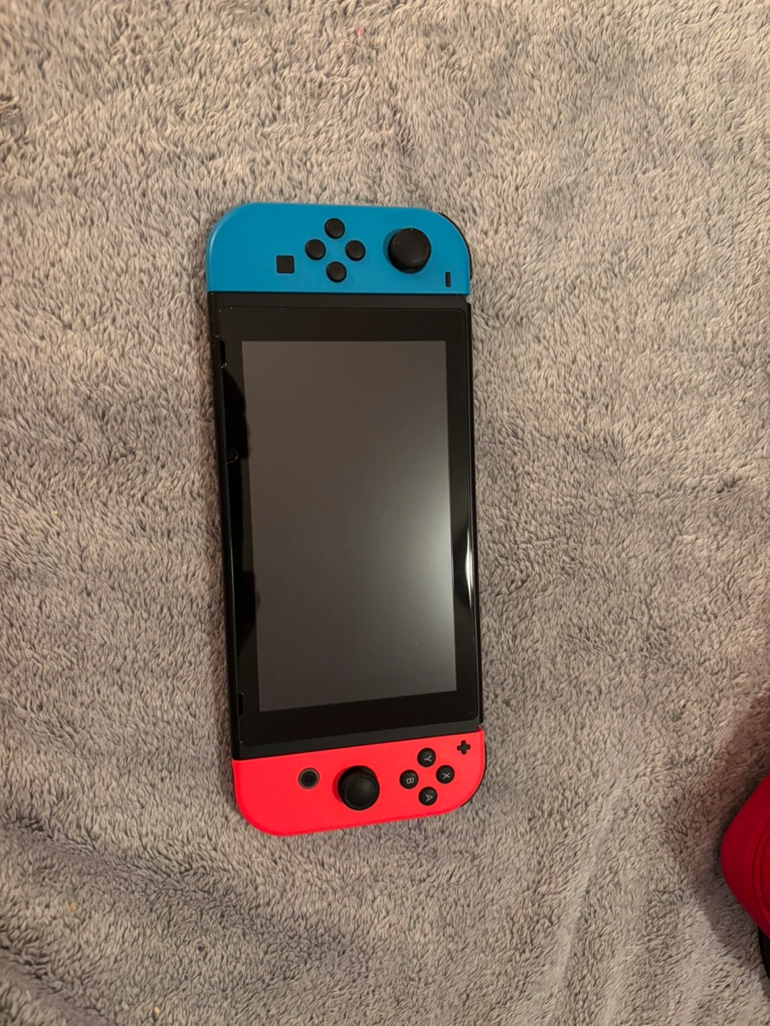 Includes Everything in the Photos ~Console ~Dock ~Joy-Con Grip ~Neon blue and red Joy-Con controllers ~Power Cord ~HDMI Cord ~Carrying Case Great condition! I have initialized the console (set to factory settings). I only played the console while attached to my tv!