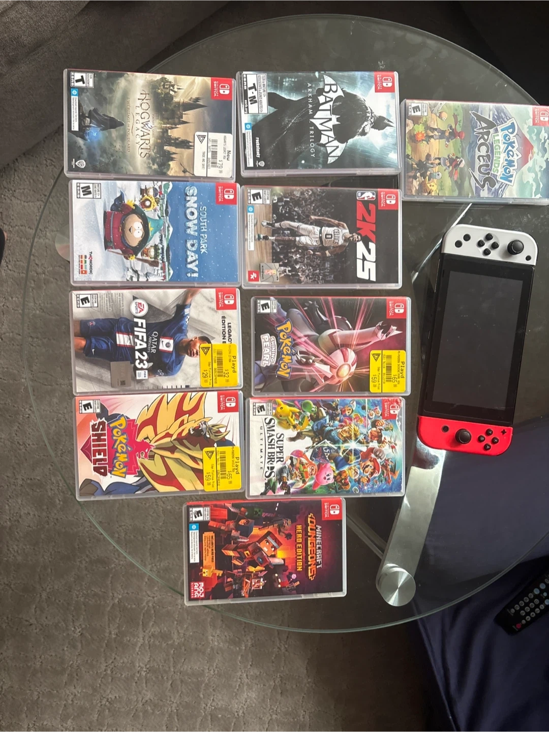 5Selling a variety of Nintendo Switch games! Titles include: - Batman Arkham Trilogy - NBA 2K25 - South Park Snow Day! - FIFA 23 Qatar Edition - Minecraft Dungeons Hero Edition - Hogwarts Legacy - Pokemon Shield All games are in great condition and ready for a new home!