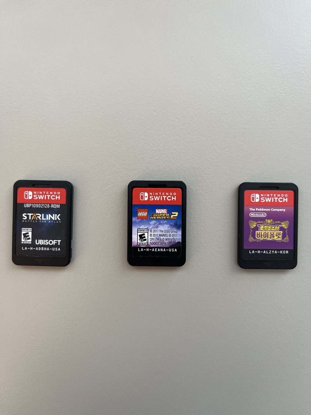 61Collection of three games 1. Pokemon Violet 2. Starlink 3. Lego Marvel Superheroes 2 No boxes as I threw them away while moving.