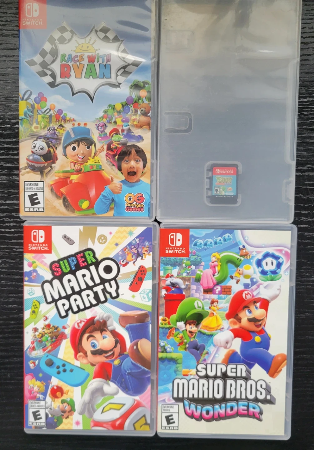 137Race with ryan- $10 Yoshi's crafted world- $55 Super Mario Bros wonder-$60 Super Mario Party -$55 Cash perfered, emt also accepted Delivery Available within Oshawa for a small fee. Canada wide shipping available at buyers expense.