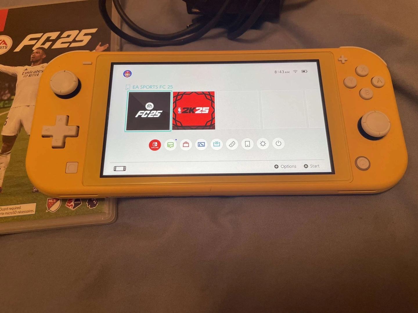 48Selling a Nintendo Switch Lite in yellow! It comes with the charger and two games, EA Sports FC 25 and NBA 2K25. Great for gaming on the go!