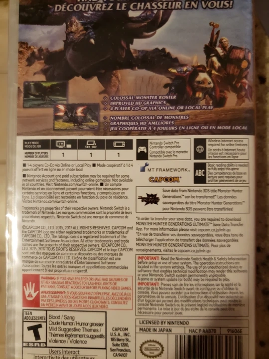 40Nintendo Switch game. Colossal monster roster. Improved HD graphics. 4 player co-op online or local play. Rated Teen. Brand new sealed. cash only.