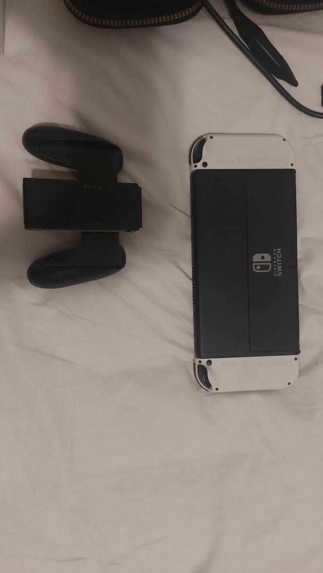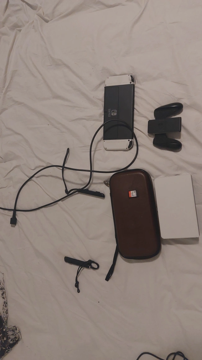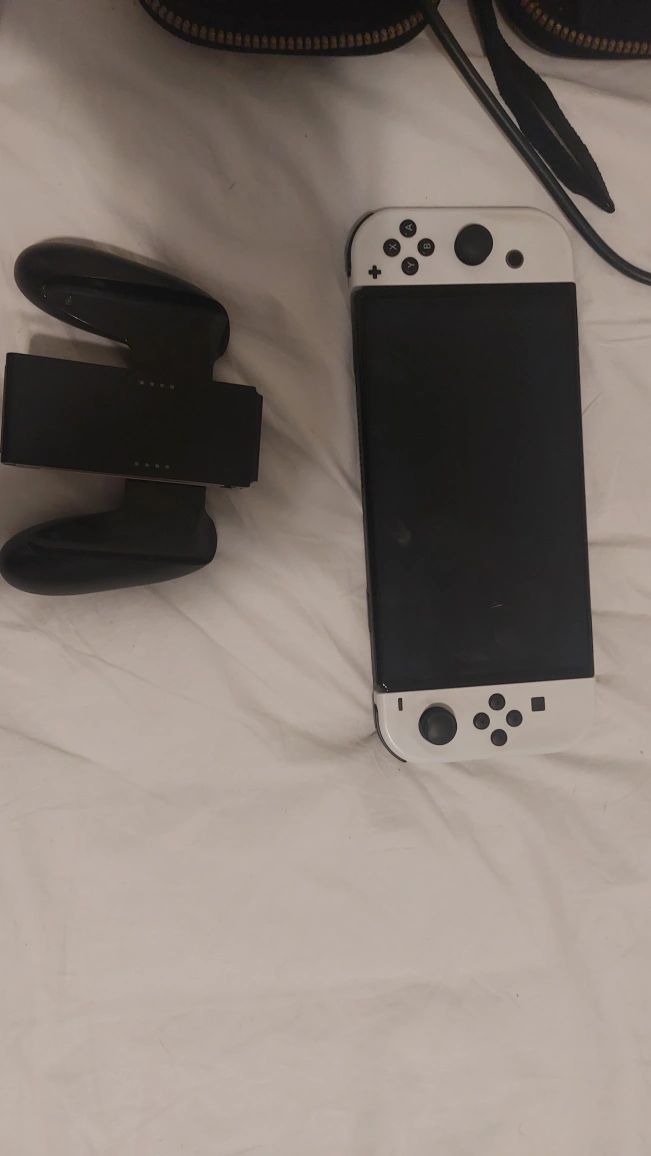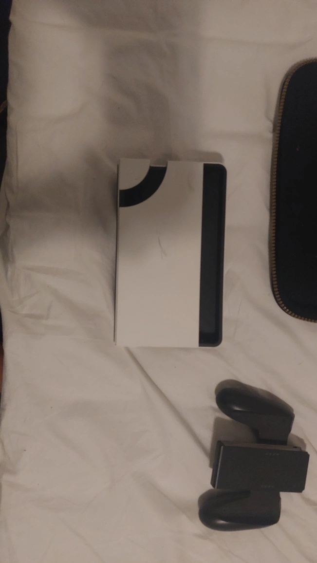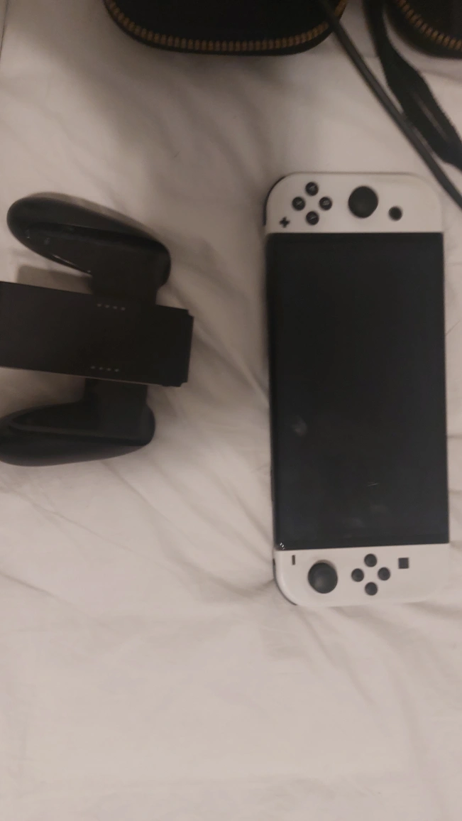 Nintendo Switch OLED for sale. Likely new. Bought on 2022. I do nit have the original box, unfortunately. I will provide charging cable, docking station, HDMI cable, Joy cons and one remote. Original legend of Zelda case. And super smash bros ultimate game.