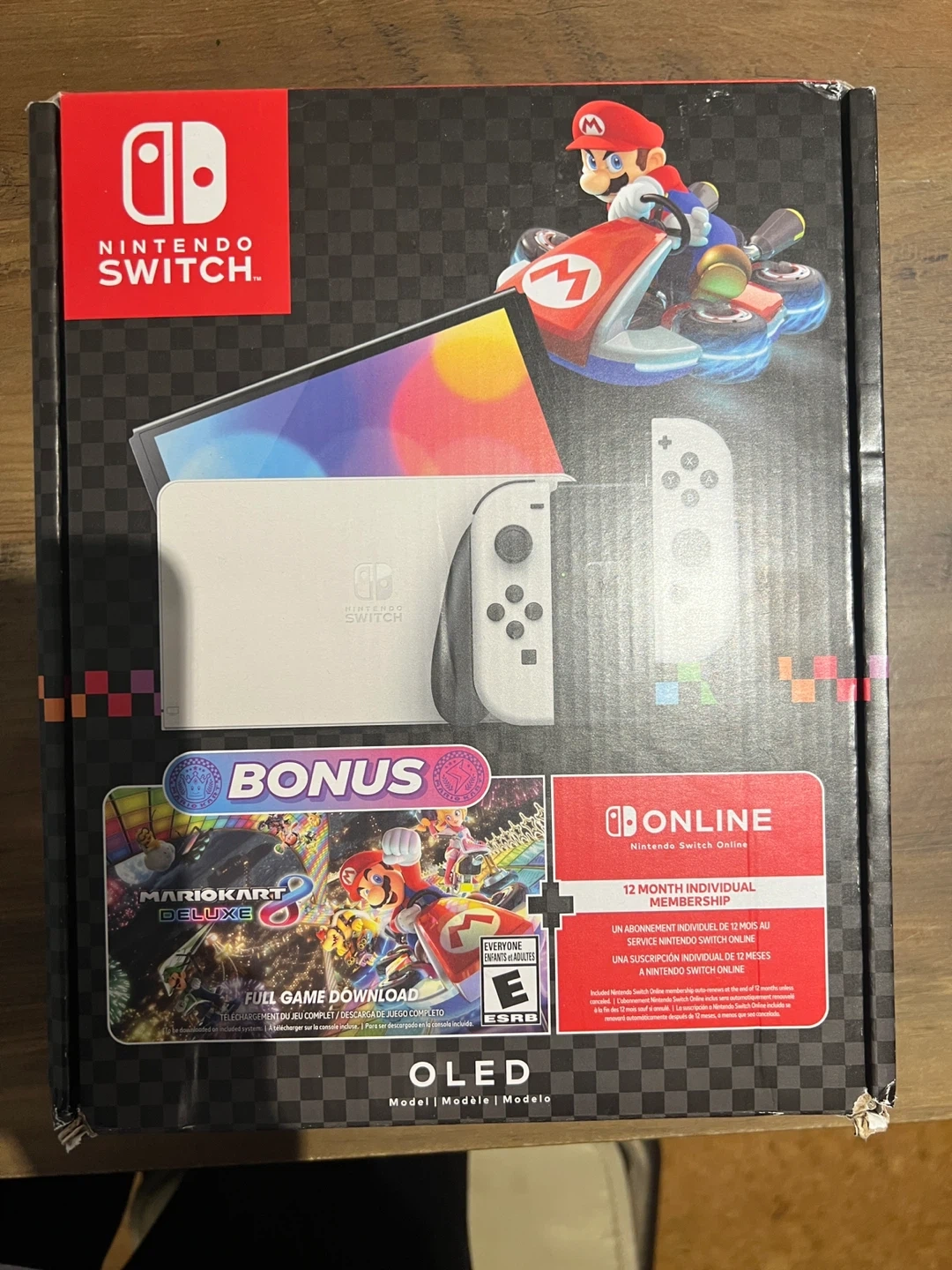 20Selling a Nintendo Switch OLED model in white! It comes with a bonus full game download of Mario Kart 8 Deluxe and a 12-month individual membership to Nintendo Switch Online. A great package for anyone looking to dive into the Nintendo ecosystem!
