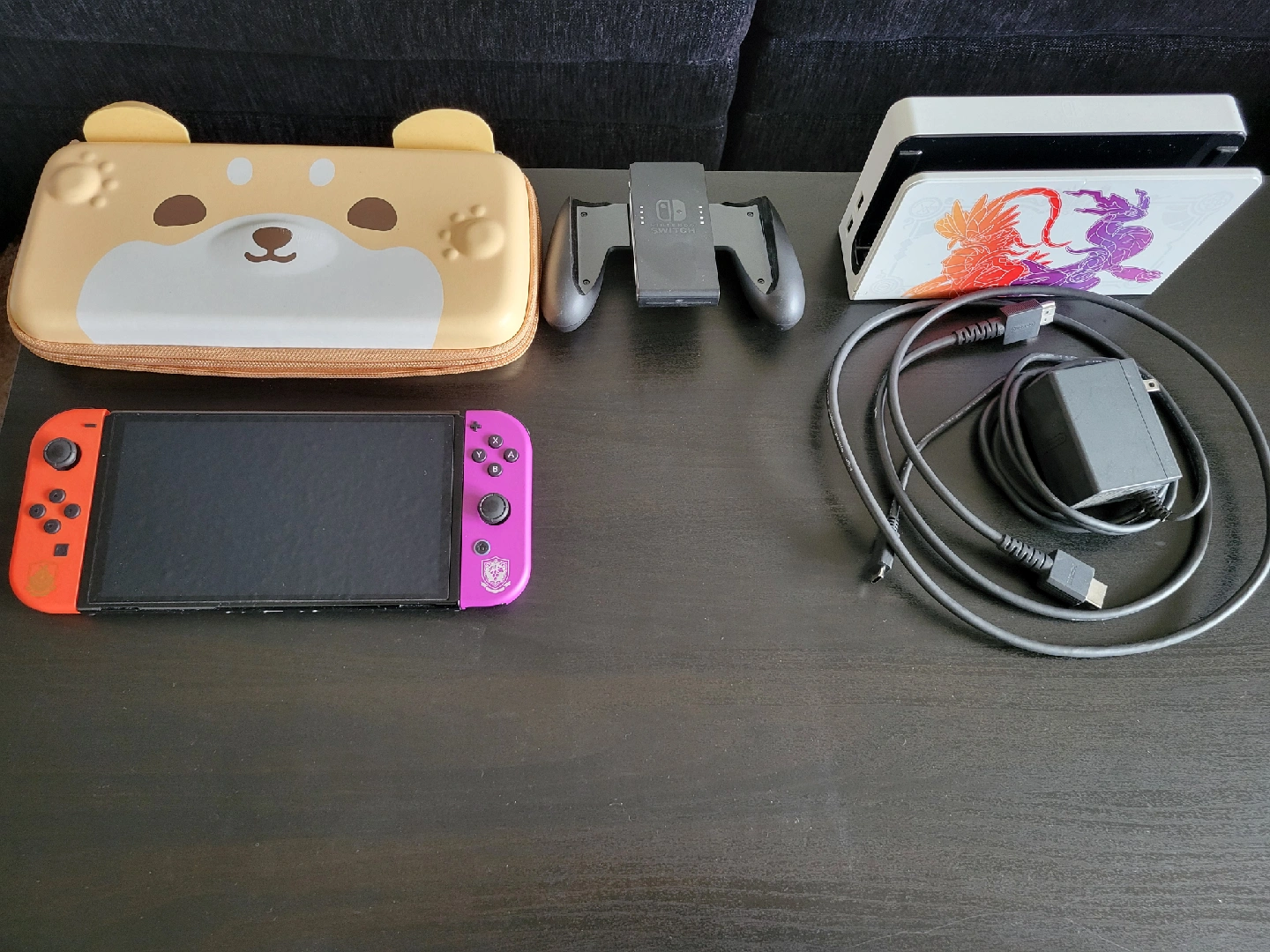 106Selling a used Nintendo Switch Pokemon Scarlet and Violet edition console with OLED screen in great condition. Everything in the picture is included.