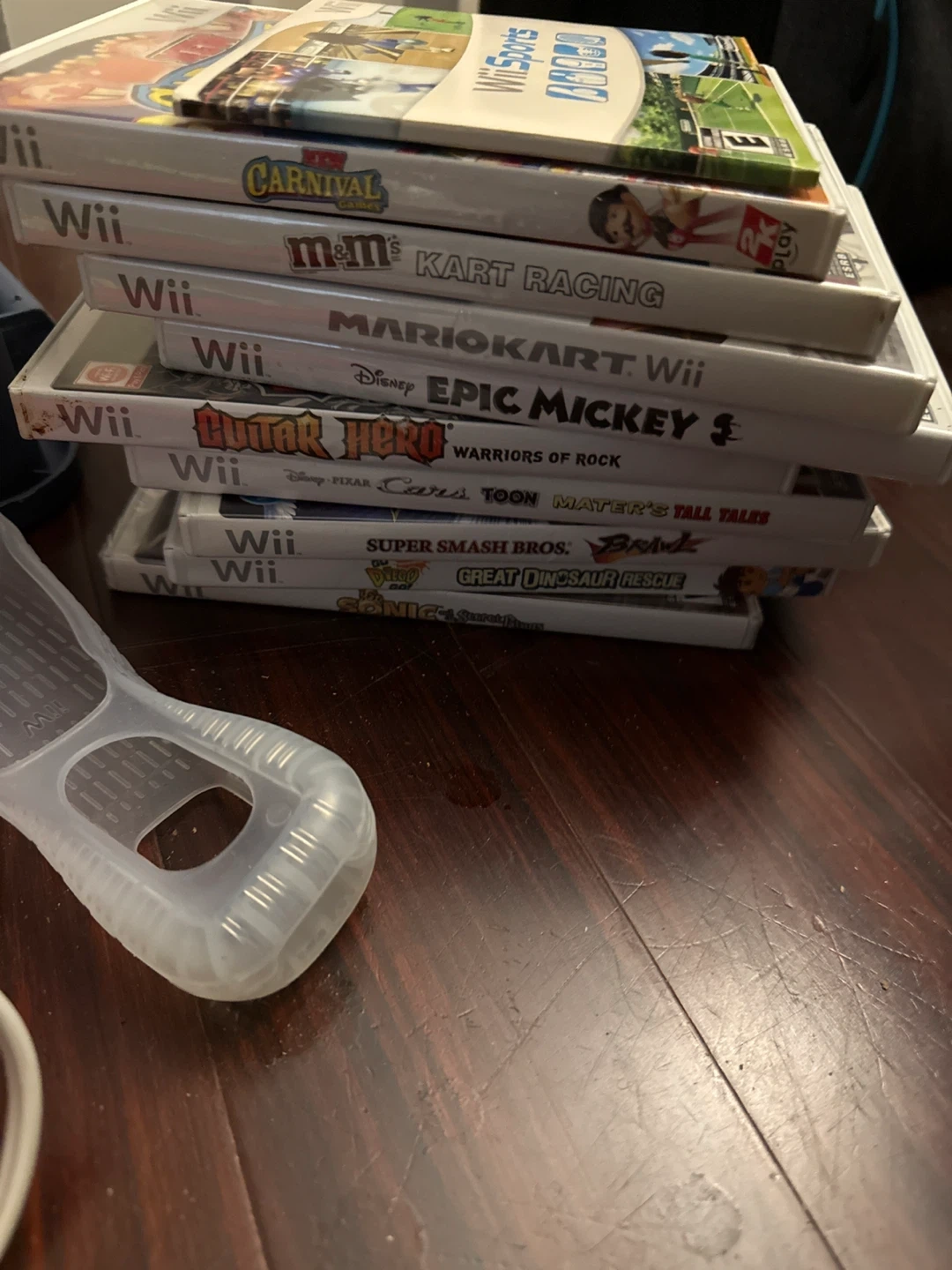 60Selling a bundle of Nintendo Wii and games! Includes titles like Wii Sports, Mario Kart Wii, Super Smash Bros Brawl, and more. Perfect for some fun family gaming! Take all together!