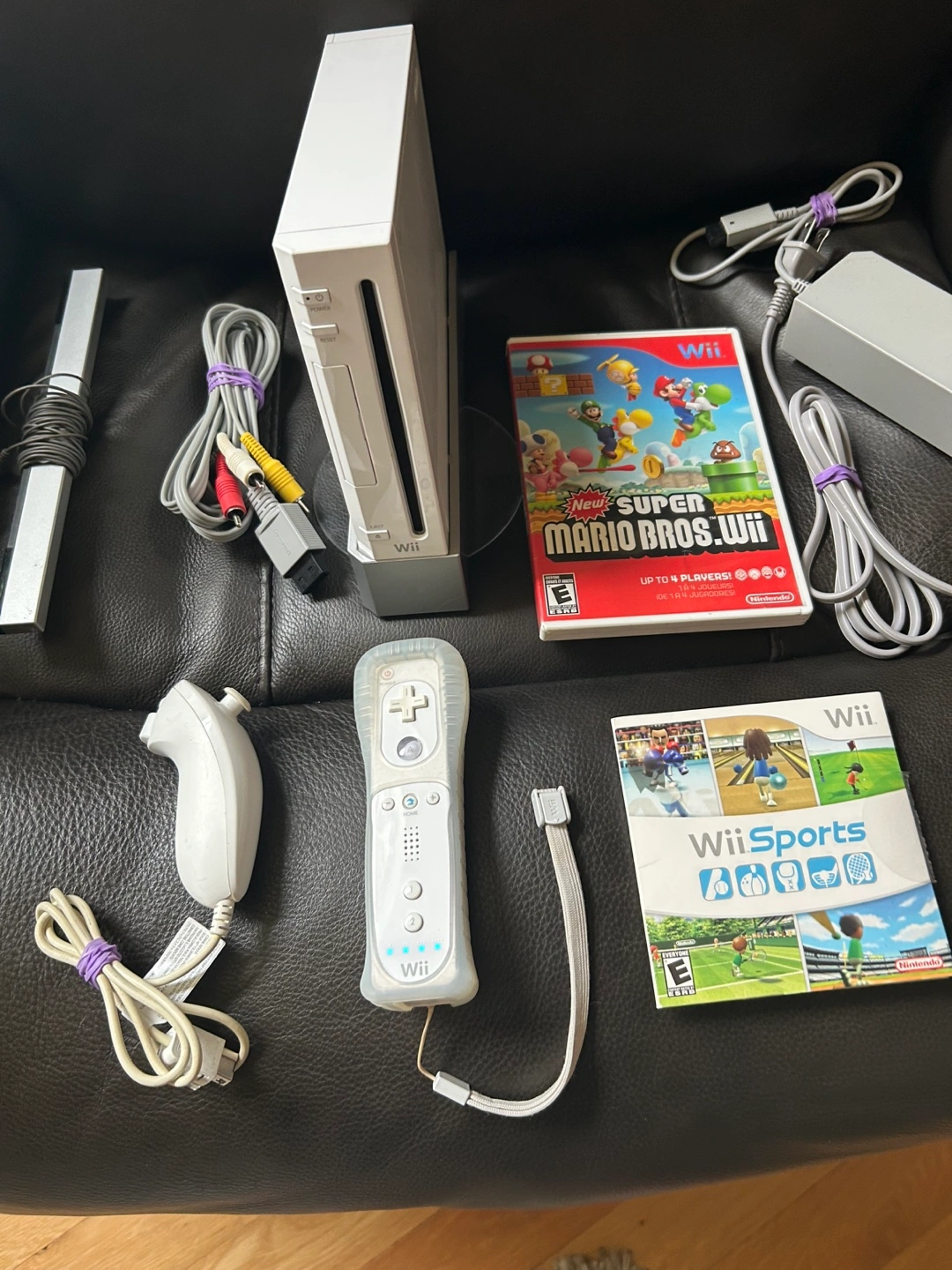 201Excellent condition. Everything tested and works perfectly fine. Including Console, Console Stand, Wii Sensor Bar, All Original Nintendo Cords & Hookups, Authentic Nintendo Wiimote, Authentic Nintendo Nunchuck, New Super Mario Bros & Wii Sports. This system is GameCube compatible and plays all Nintendo Wii and Nintendo GameCube games. Selling altogether only. $125 firm. Pick up in Steinbach or can meet up in Sage Creek or Deacons Corner