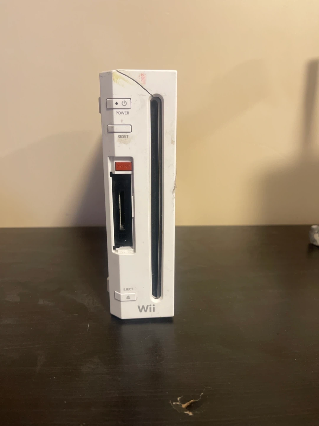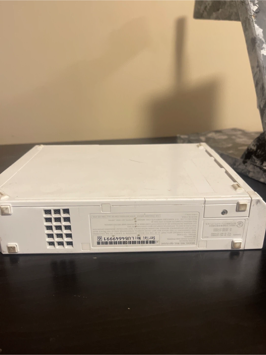 19Selling a used Nintendo Wii console in white. It shows some signs of wear, but it's still fully functional and ready for some gaming fun! Perfect for reliving some classic Wii games or introducing them to a new generation