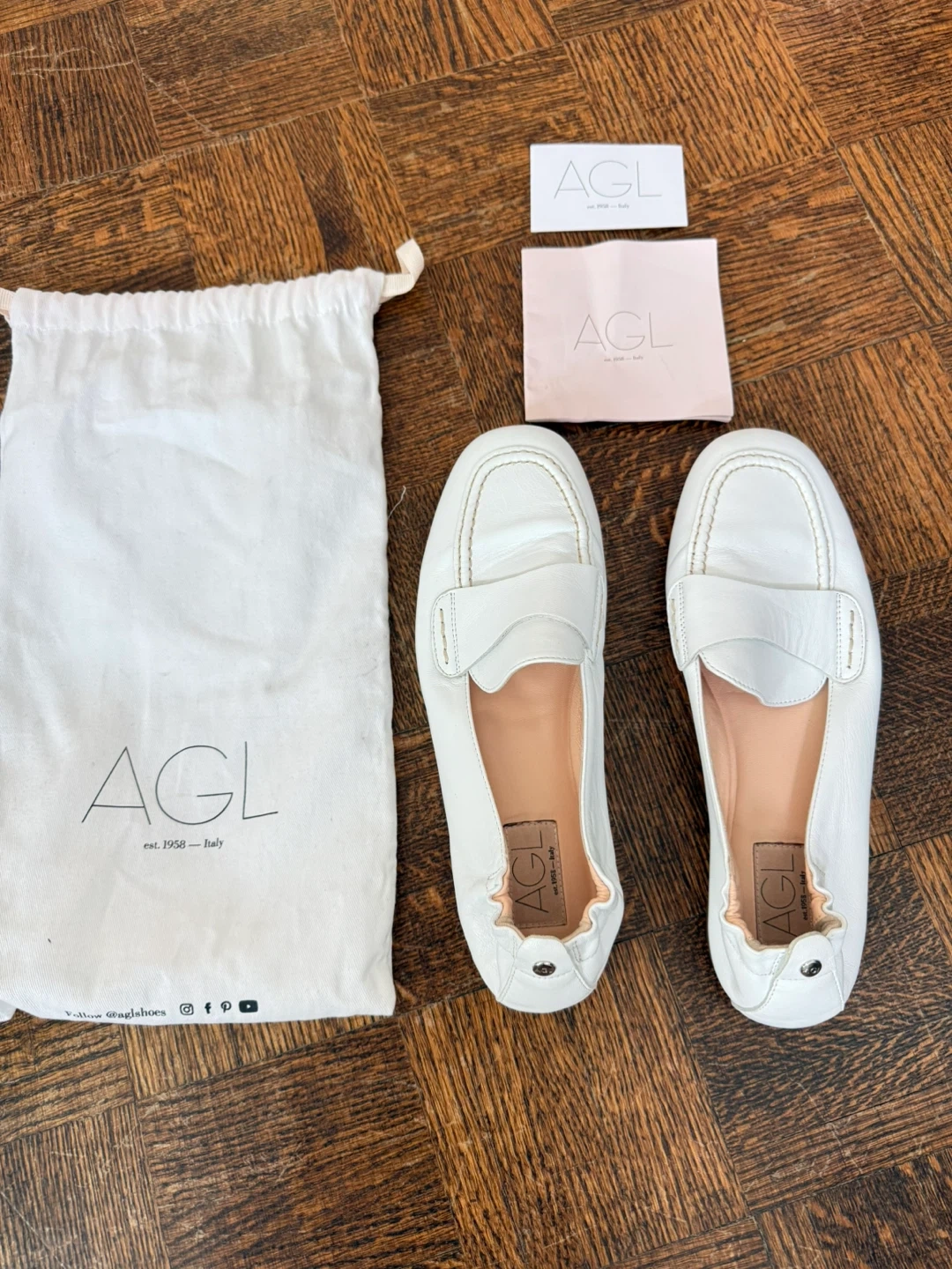 AGL White Leather Loafers - Size 8,5
