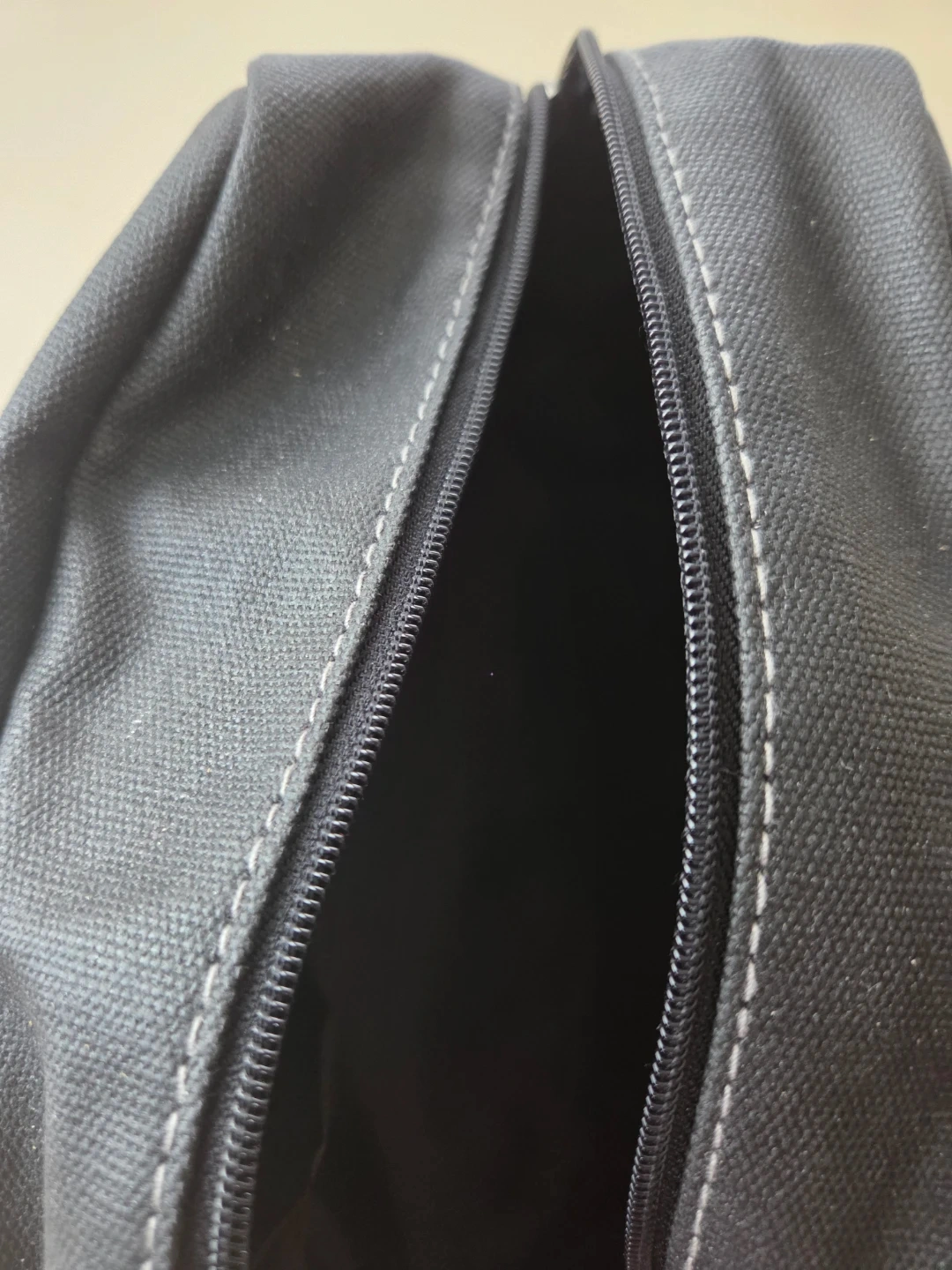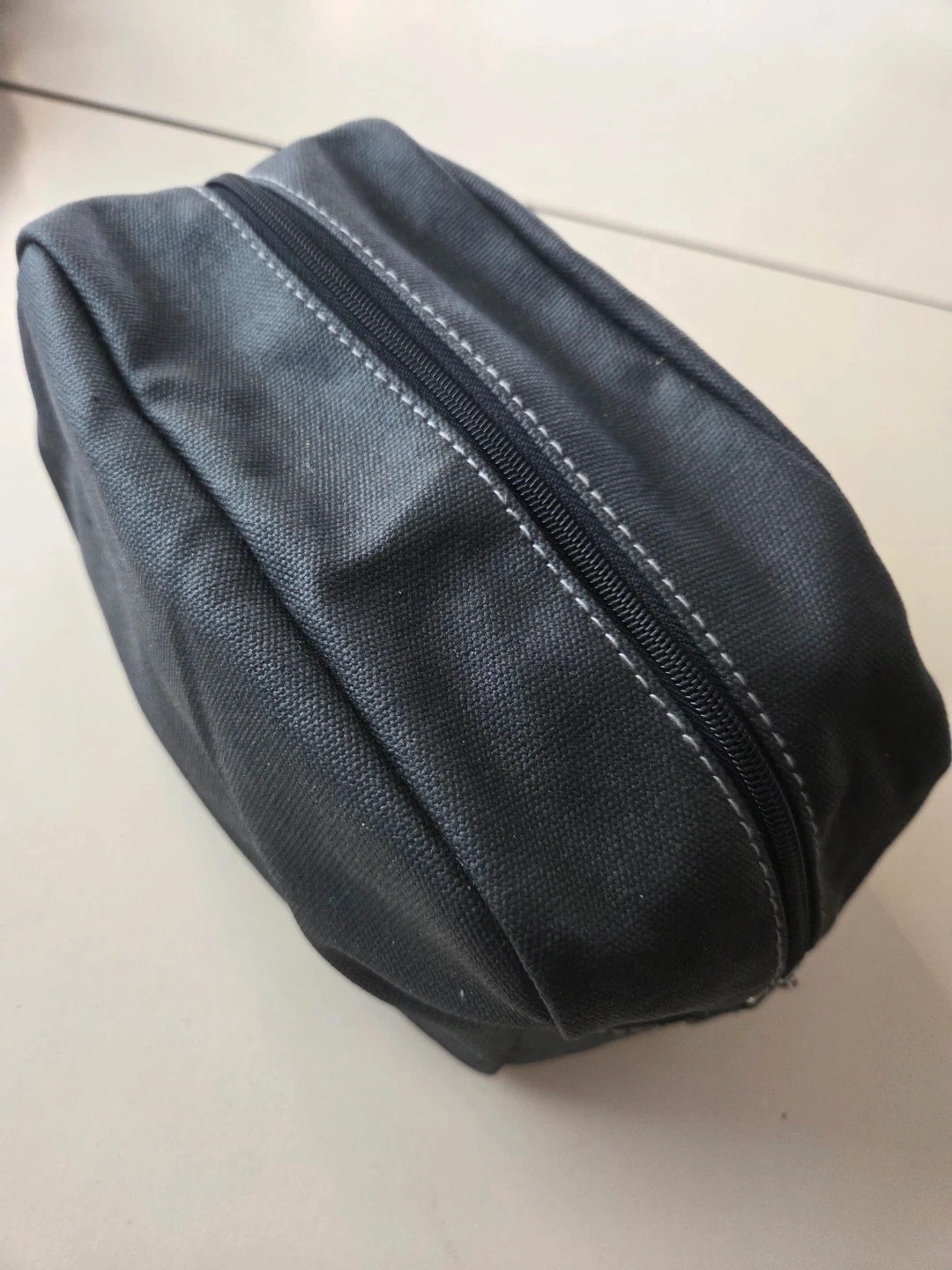 This NEW black canvas toiletry bag is from Dior Parfums. It's a handy size for travel essentials. The bag features a zippered main compartment and an additional zippered pocket on the front.