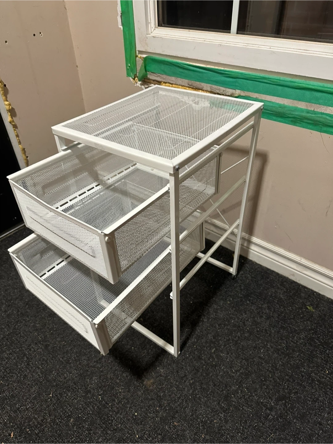 Selling a handy IKEA storage unit with metal mesh drawers.