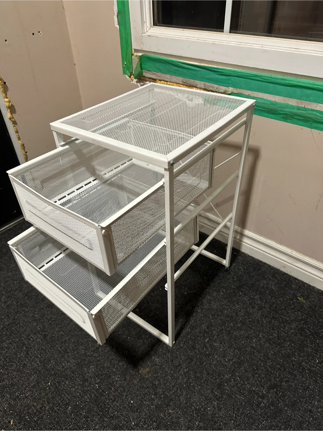 Selling a handy IKEA storage unit with metal mesh drawers.