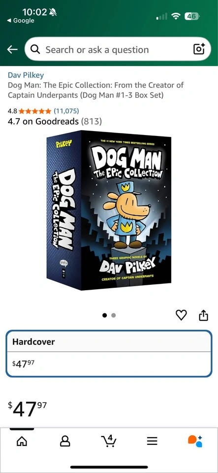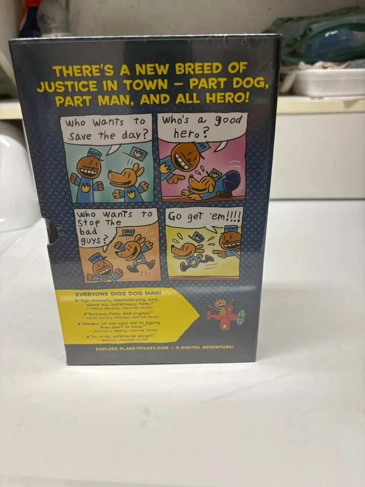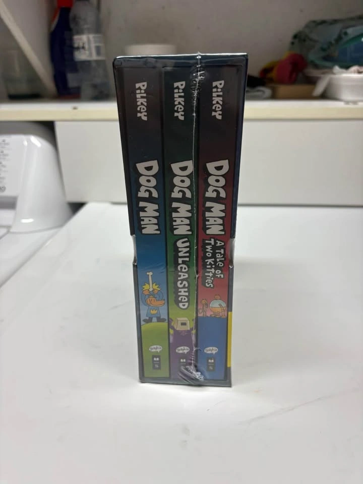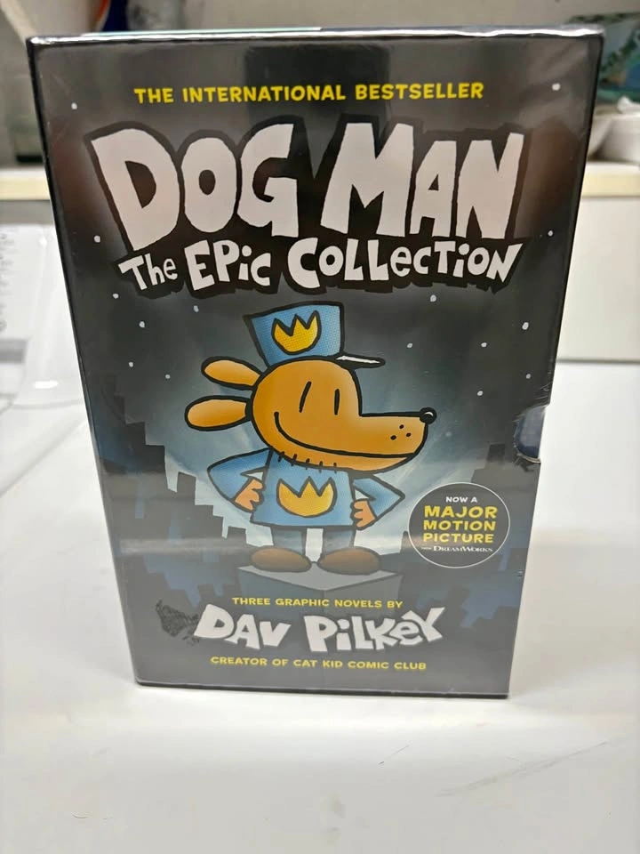 97New, unopened, factory-sealed Dog Man: The Epic Collection box set. Includes the first three books in the series by the creator of Captain Underpants: Dog Man, Dog Man Unleashed, and Dog Man: A Tale of Two Kitties. Hardcover collection with a total of 720 pages. Packaging has some retail shelf wear. Great deal!