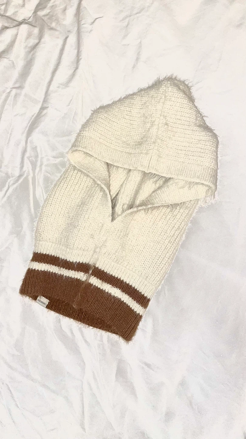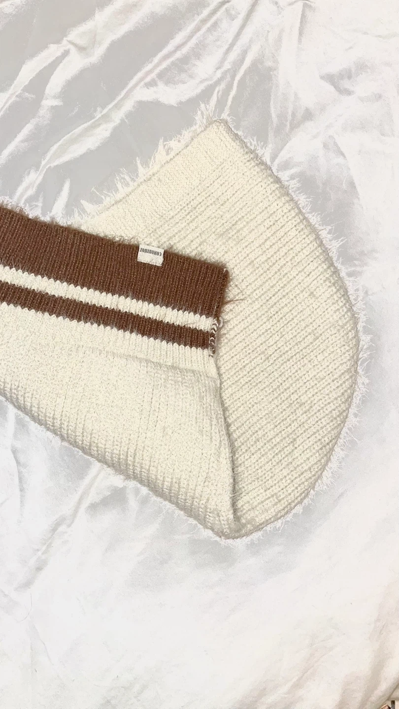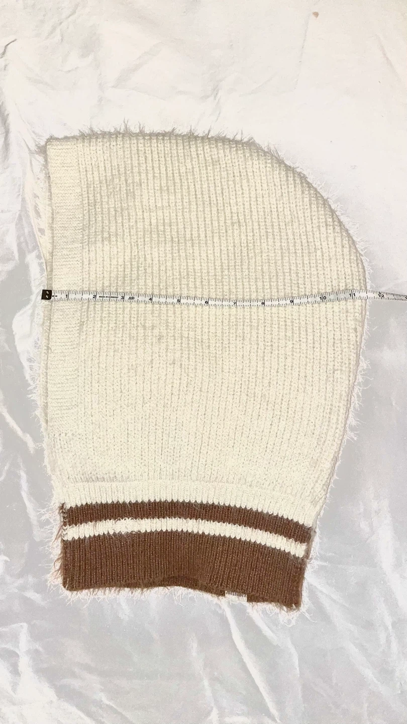 Cozy fuzzy ivory knit balaclava Ivory color with brown stripes, perfect for staying warm. See measures on images. In good condition. Pick up in East Village. Cash only please.