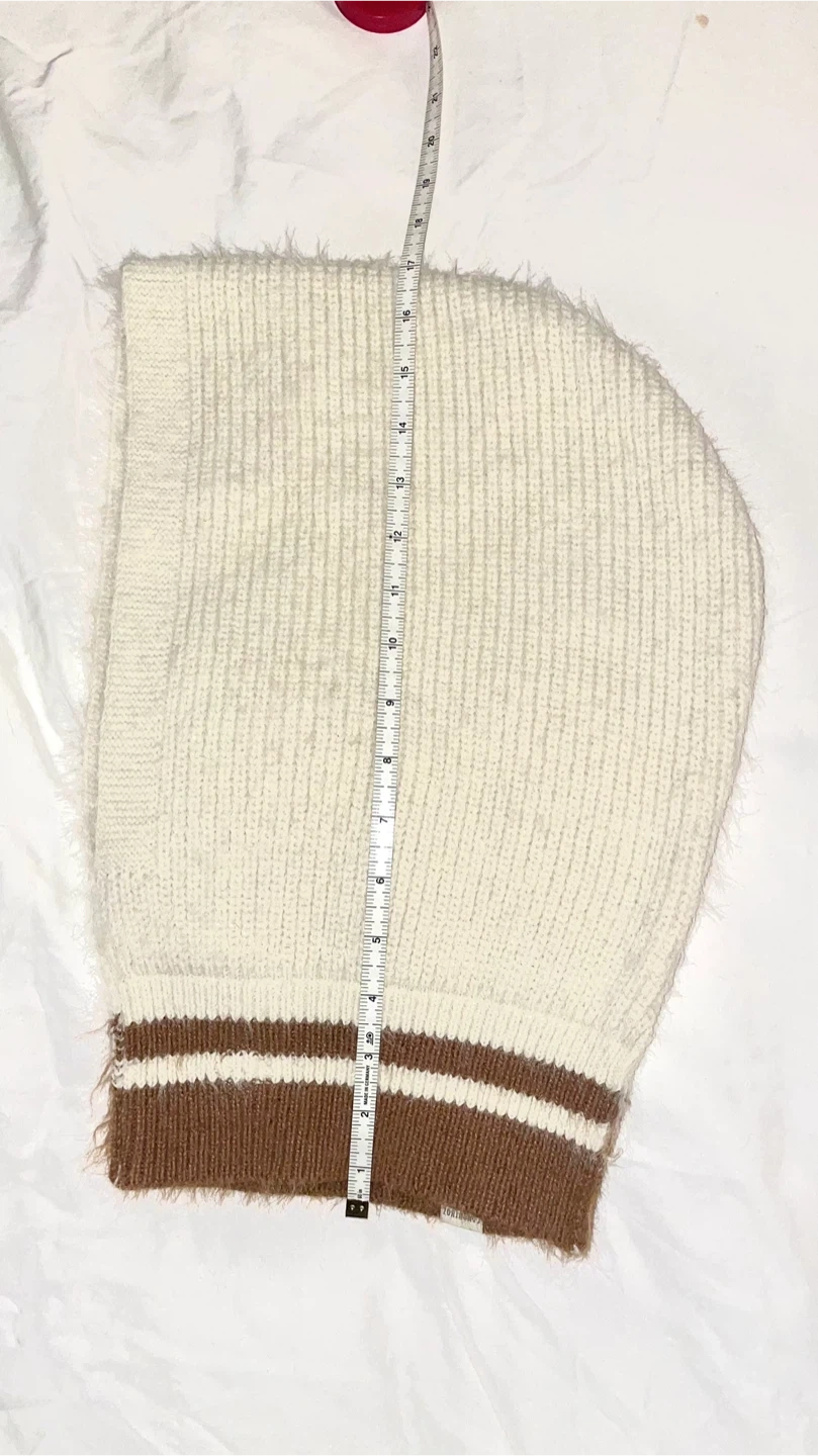 Cozy fuzzy ivory knit balaclava Ivory color with brown stripes, perfect for staying warm. See measures on images. In good condition. Pick up in East Village. Cash only please.