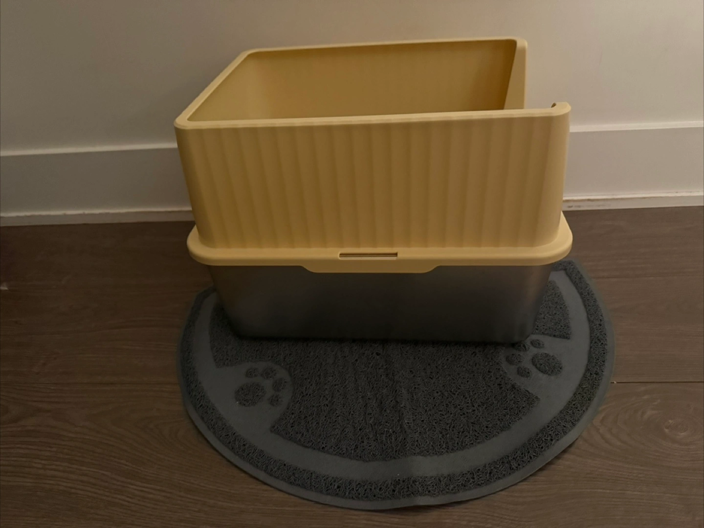 Small stainless steel cat litter box. plastic top, stainless steel bottom. Was used for a foster for about 1.5 months but has been thoroughly cleaned! Includes scoop and mat. Easy to clean, better for your cats health