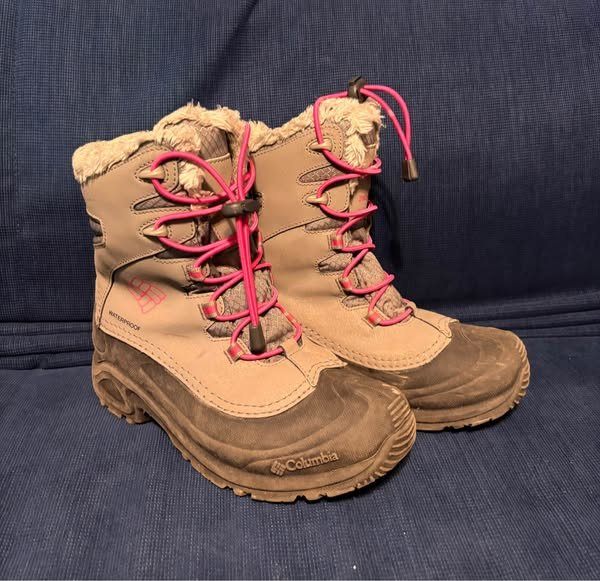 Selling a pair of Columbia kids' winter boots in size 6Y. They are waterproof and have a drawstring closure. Perfect for keeping little feet warm and dry this winter!