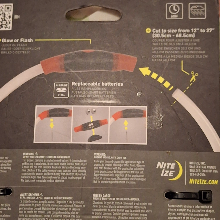 167Keep your furry friend safe and visible with this NiteHowl LED safety necklace! It's perfect for dawn, dusk, and dark conditions. The collar is designed to be cut to size from 12" to 27" (30.5cm - 68.5cm) for a customized fit. It uses replaceable batteries