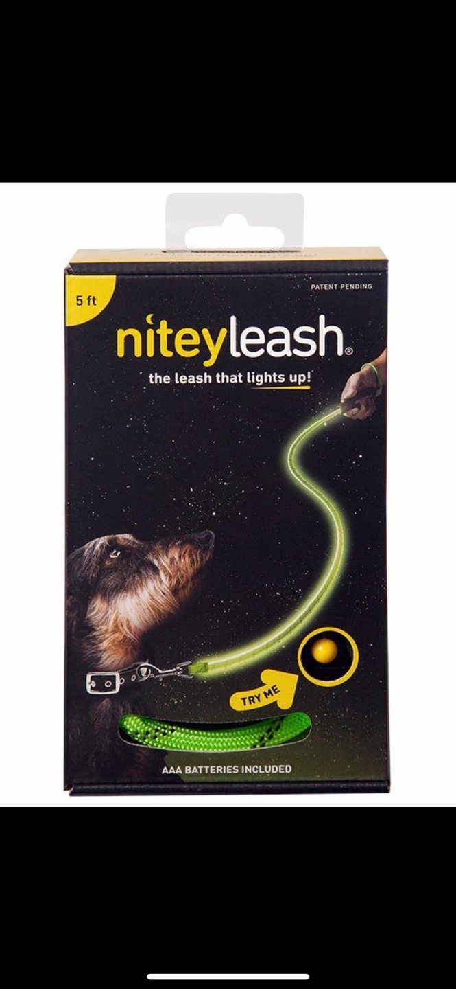 855ft NiteyLeash. Lights up at night. Durable nylon rope. AAA batteries included. Great for nighttime walks. Available in three colours: Blue Green Pink Brand new unopened Pick up in Vancouver near Oak and 59th
