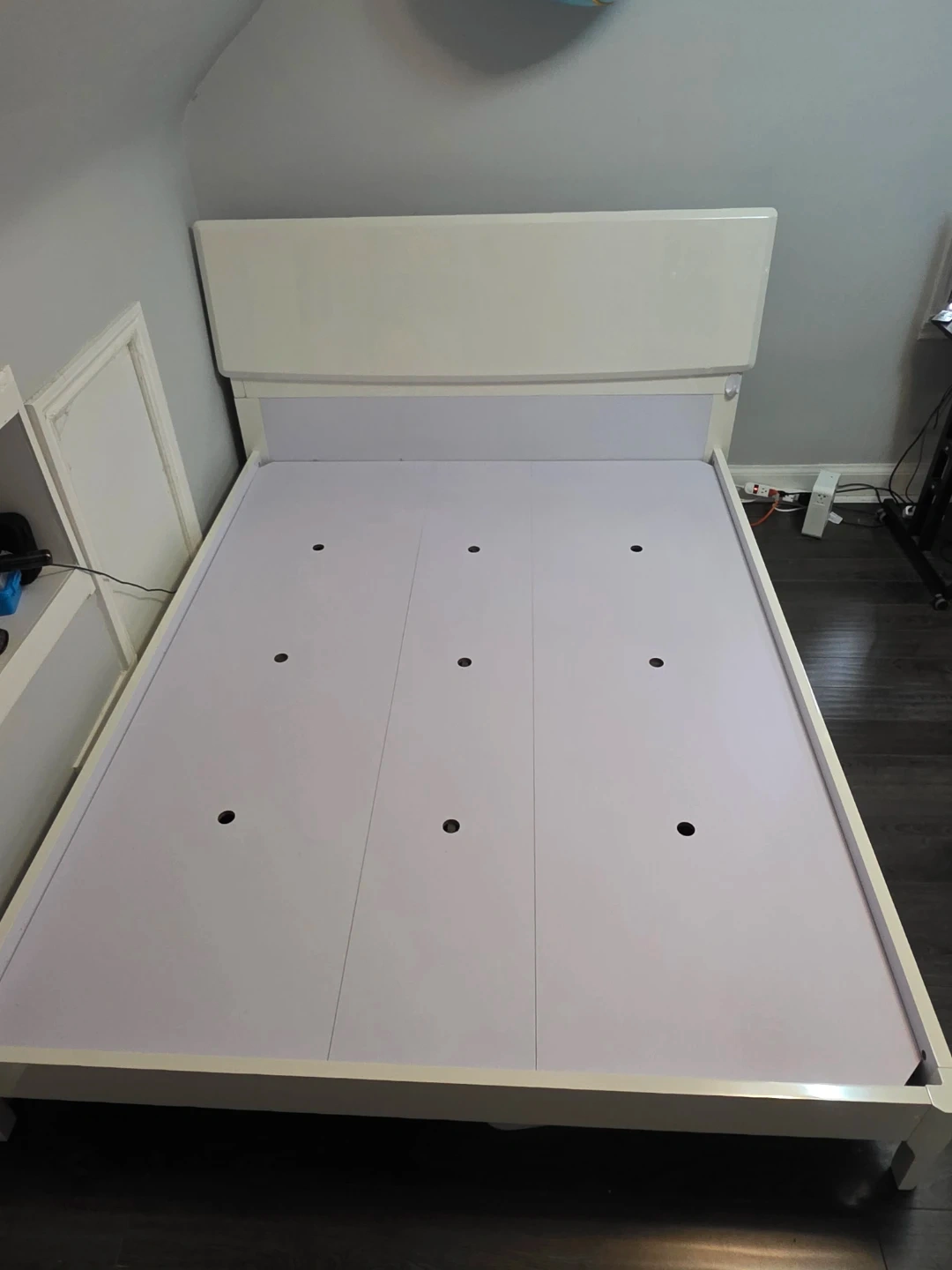 Selling this high-quality, minimalist white bed frame. It is very sturdy with a solid platform base (not thin slats), providing excellent support for your mattress and preventing sagging.