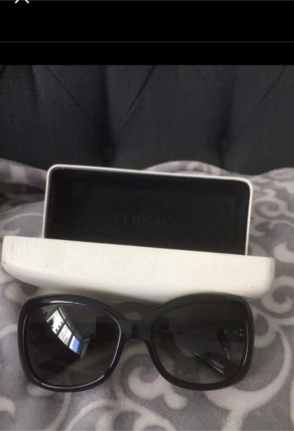 Versace-black sunglasses with silver Logo.