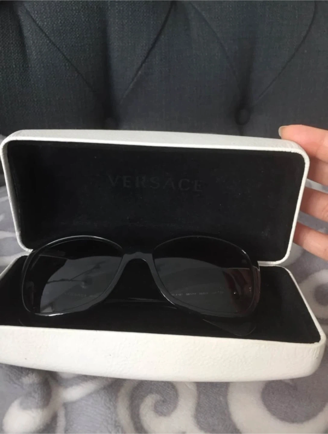 These are Versace sunglasses in black. They come with their original case. The model number is MOD. 4187 and the lens width is 56mm.