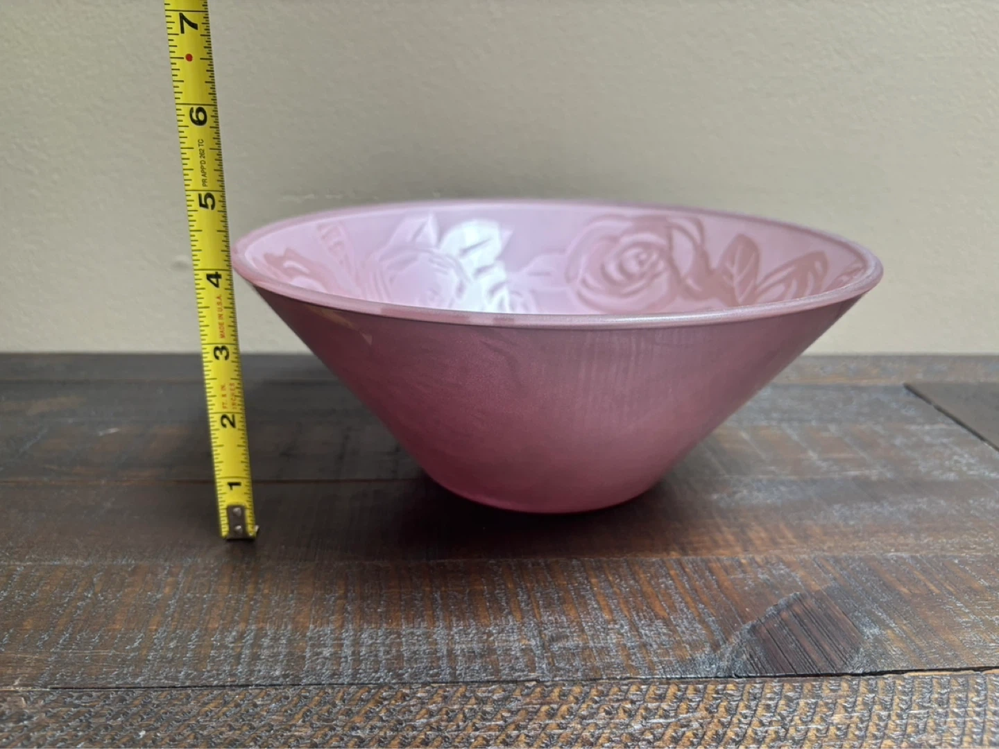This Portmeirion Amabe bowl is in a metallic rose red colour. It features a beautiful embossed rose pattern.