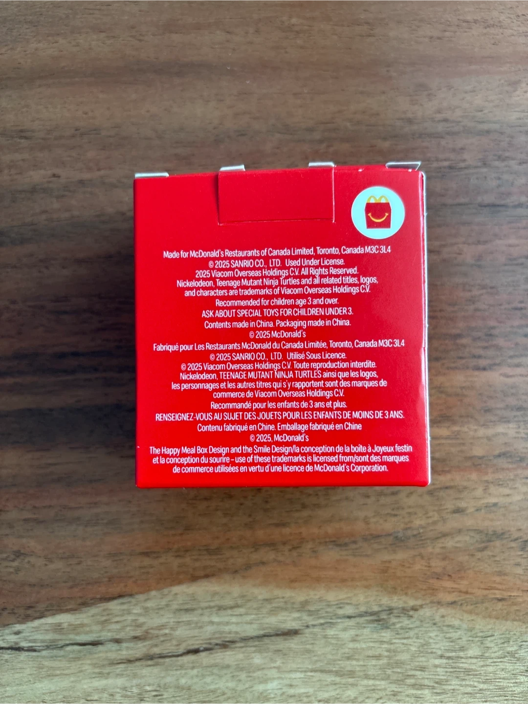 Selling a McDonald's Teenage Mutant Ninja Turtles x Hello Kitty and Friends toy! Recommended for children age 3 and over. Contents made in China. The Happy Meal Box Design and the Smile Design are trademarks of McDonald's Corporation