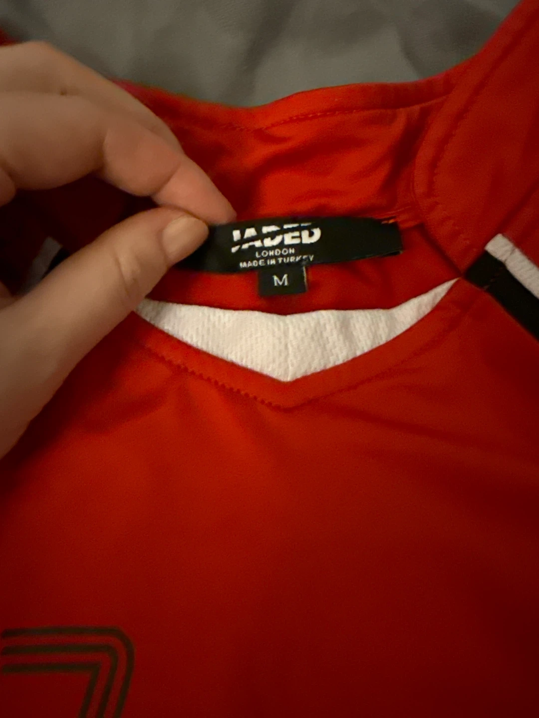 This is a Jaded Archives Sport jersey t-shirt in red. It's a size medium and made in Turkey. It features the number 27 on the front.