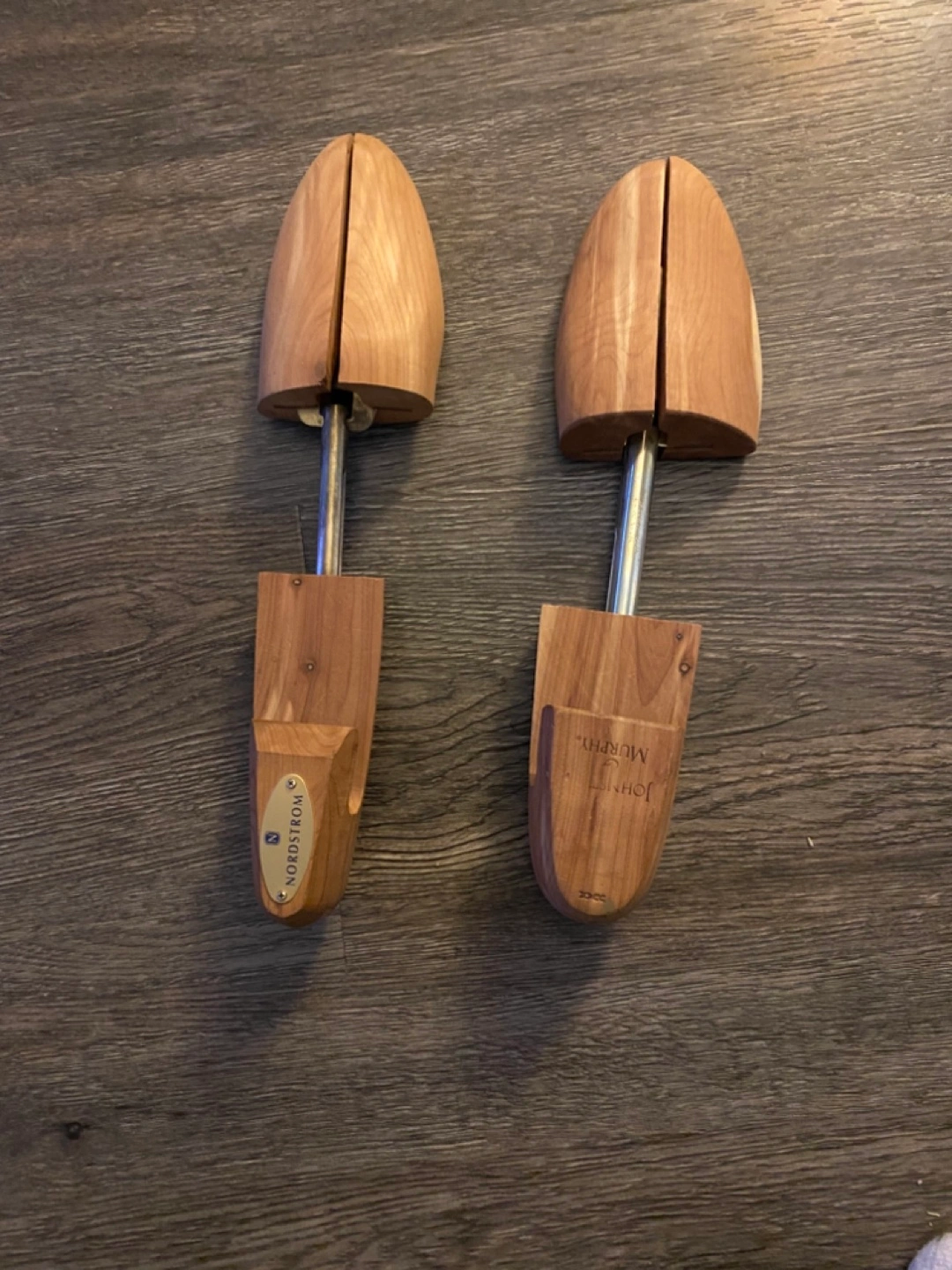Two pairs of cedar shoe trees. Wooden construction. Metal centre post. Adjustable to fit any shoe size. Excellent for maintaining perfect shape for leather boots or shoes . Can not deliver. Pick up near Westbrook Mall #freecycle