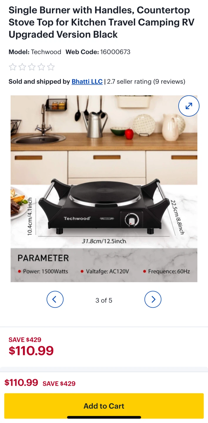Techwood Single Burner Countertop Stove Top