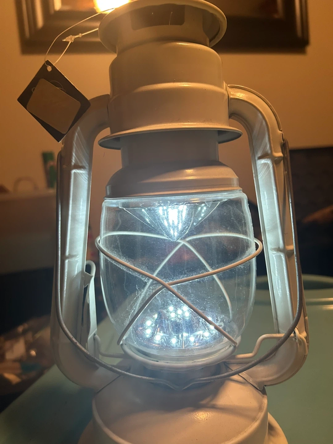 This white LED lantern has a classic design. It's powered by 3 Duracell AA batteries, which are included. It's great for providing ambient light during power outages or for decorative purposes.