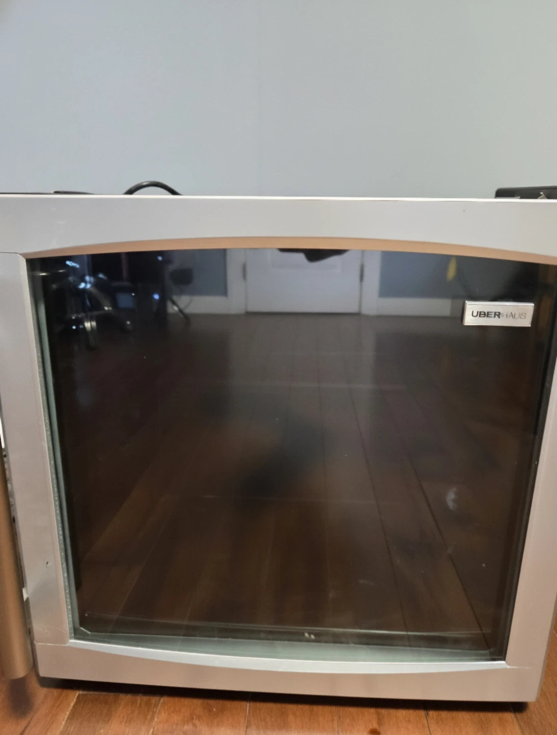 This UberHaus mini fridge cooler is perfect for keeping drinks chilled. It's compact and ideal for a dorm room or office. Features a transparent door for easy viewing.