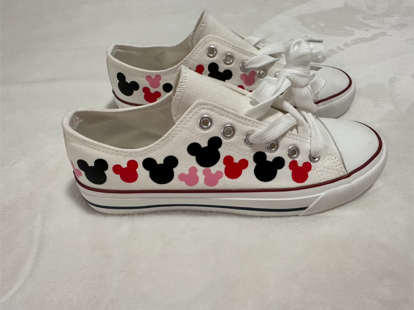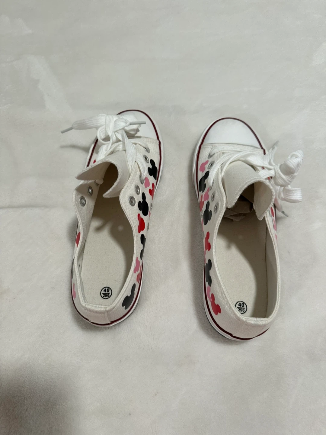 Cute Mickey Mouse themed canvas shoes! They're a size 40, which is equivalent to a US size 9 for women. These are perfect for adding a bit of fun to your casual outfits