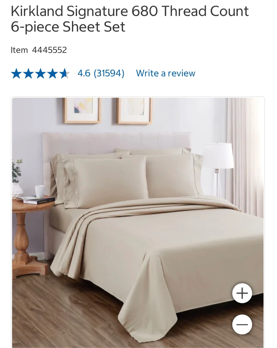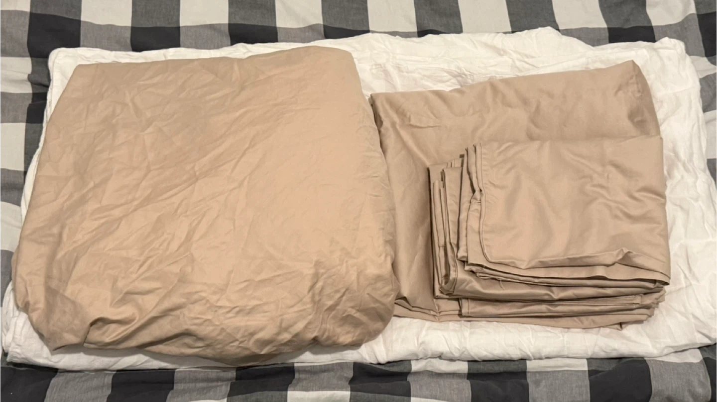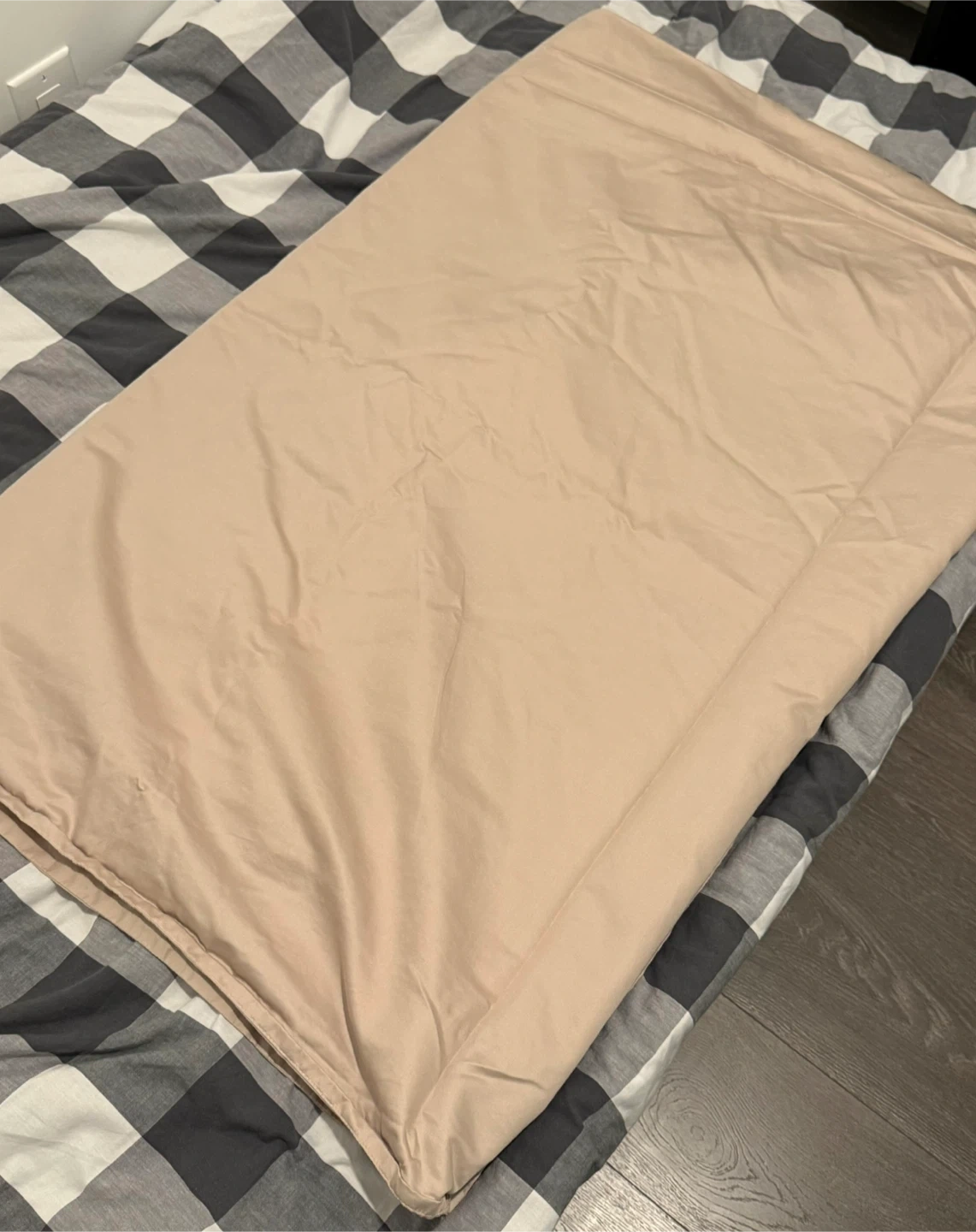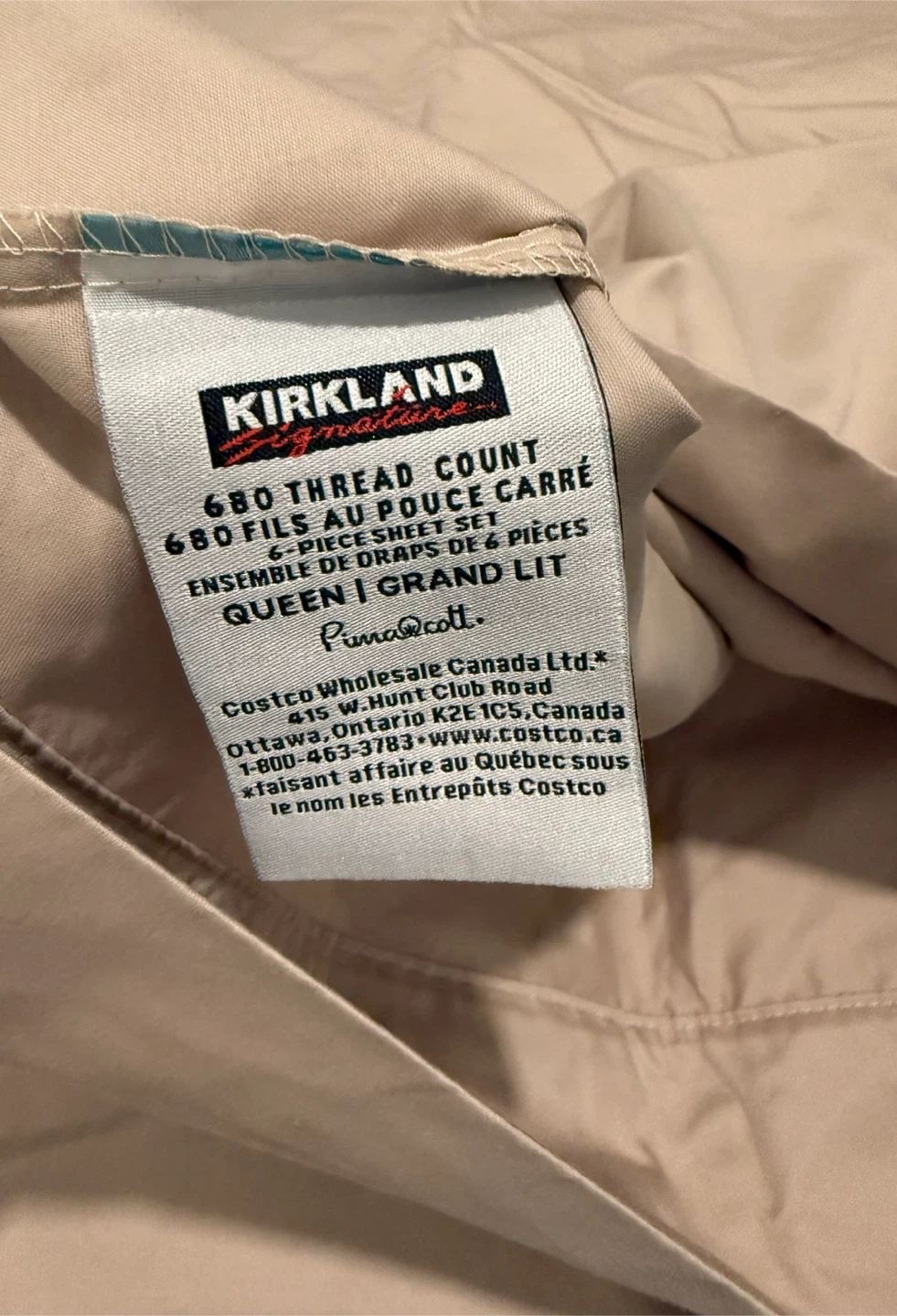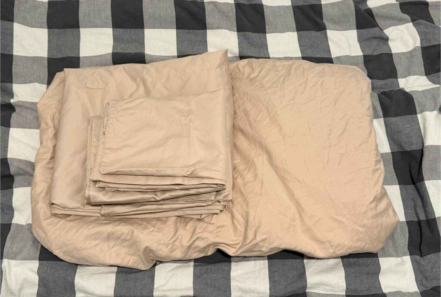 Selling a 6-piece Queen sheet set from Kirkland Signature with a Muji blanket cover.