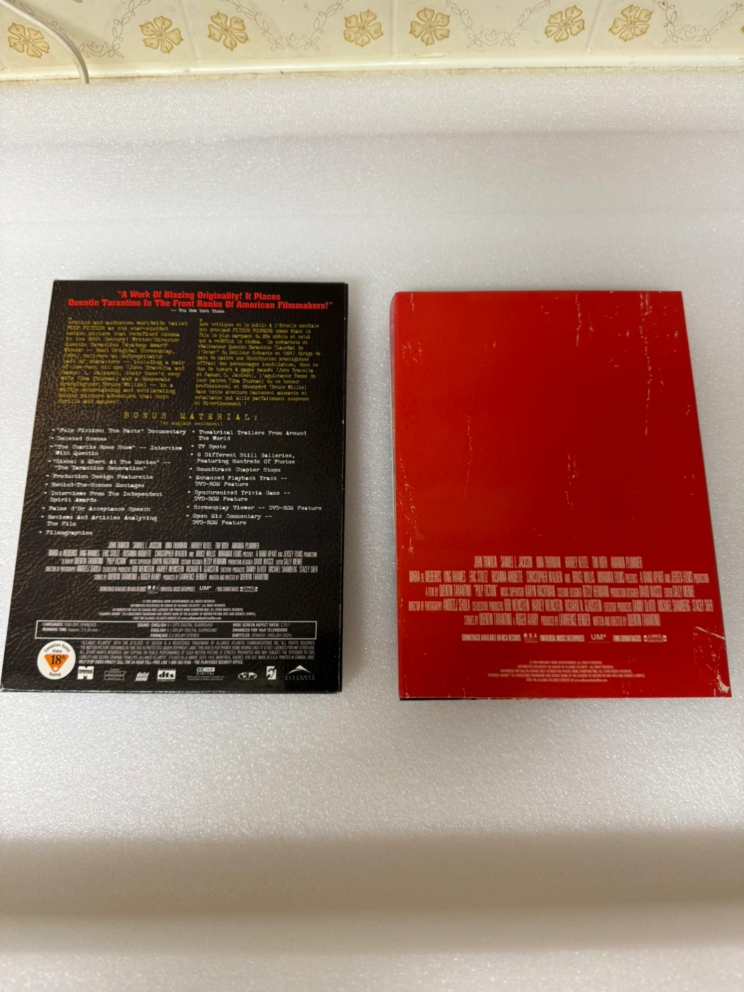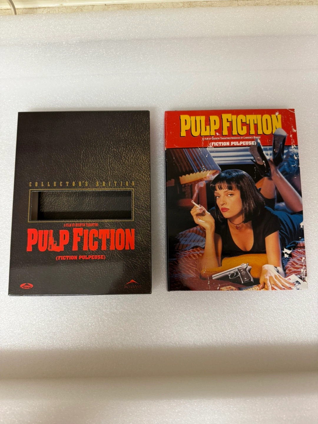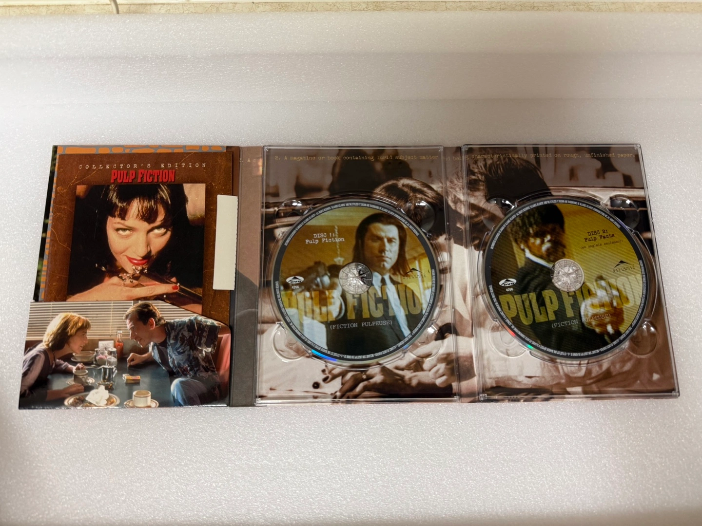 Collectible DVD of Pulp Fiction. Includes two discs and a special collector's box. Features special features and bonus content.