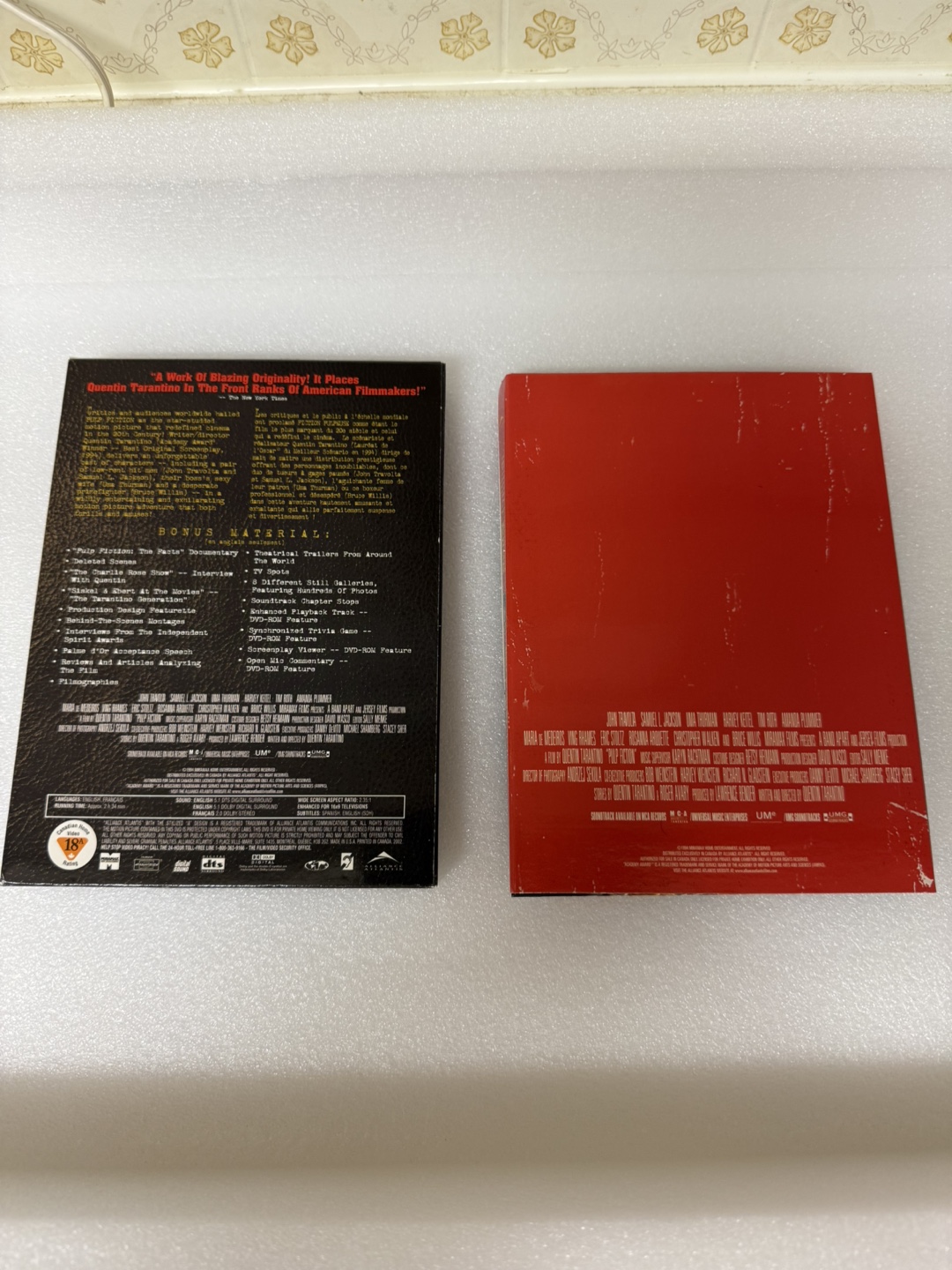 Collectible DVD of Pulp Fiction. Includes two discs and a special collector's box. Features special features and bonus content.